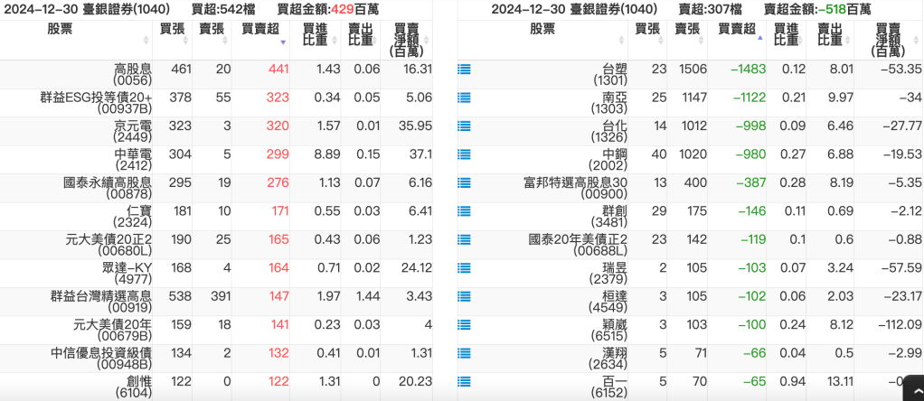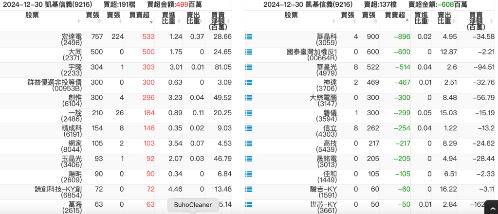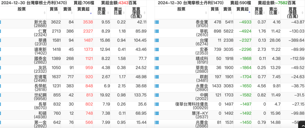 2024-1230關鍵券商買賣超 2024-12-30 股狗網小編 籌碼面每日資訊 發表留言 關鍵券商買賣超: 臺銀證券(1040): 台灣摩根士丹利(1470): 凱基台北(9268): 凱基信義(9216): 元大土城永寧(9875): 康和永和(845B) : 富邦建國(9658): 免責宣言 本網站文章所提供資訊僅供參考,並無任何推介買賣之意,投資人應自行承擔交易風險。 分享此文: 分享到 X(在新視窗中開啟) X 分享到 Facebook(在新視窗中開啟) Facebook 喜歡 正在載入...