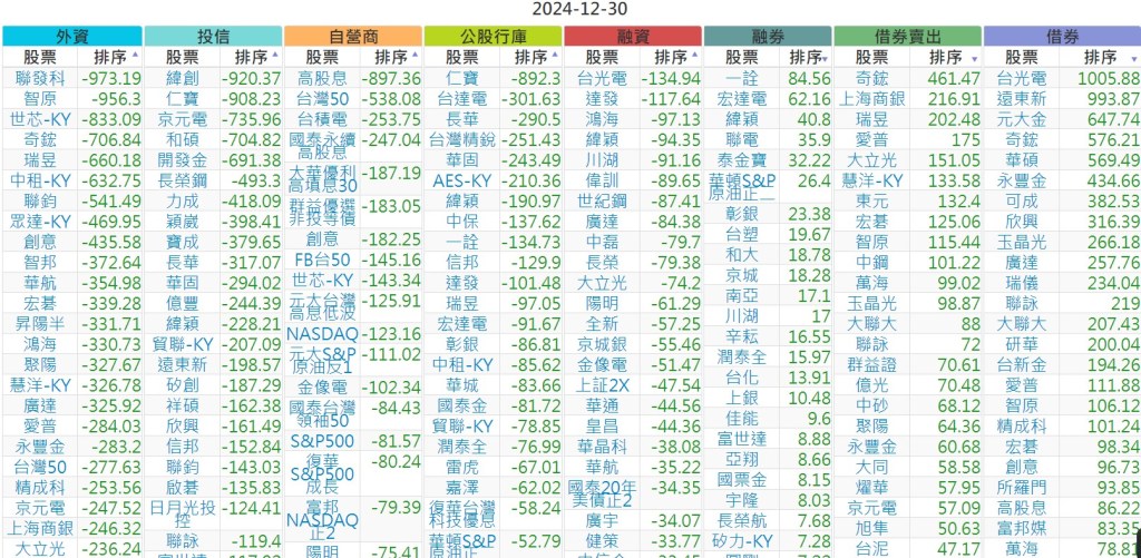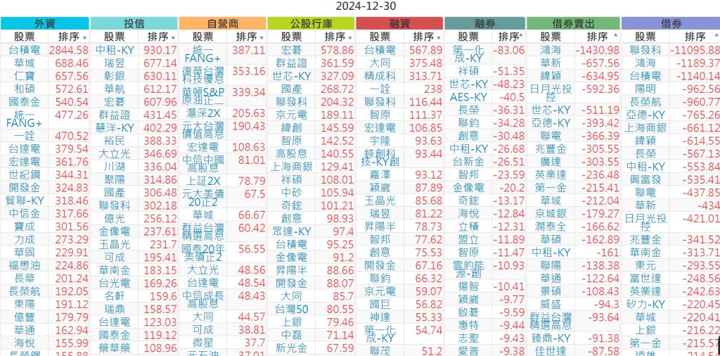 2024-1230【外資、投信】買賣超個股 2024-12-31 股狗網小編 投資誌-大盤 發表留言 上市:【外資、投信】買超(依金額) (單位:百萬) 上市:【外資、投信】賣超(依金額) (單位:百萬) 上市:【外資、投信】買超(依張數) (單位:張數) 上市:【外資、投信】賣超(依張數) (單位:張數) 免責宣言 本網站文章所提供資訊僅供參考,並無任何推介買賣之意,投資人應自行承擔交易風險。 分享此文: 分享到 X(在新視窗中開啟) X 分享到 Facebook(在新視窗中開啟) Facebook 喜歡 正在載入...