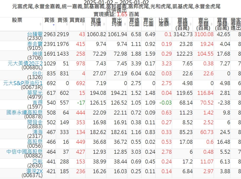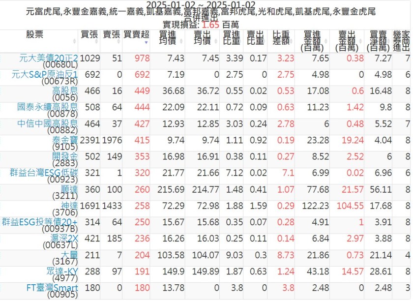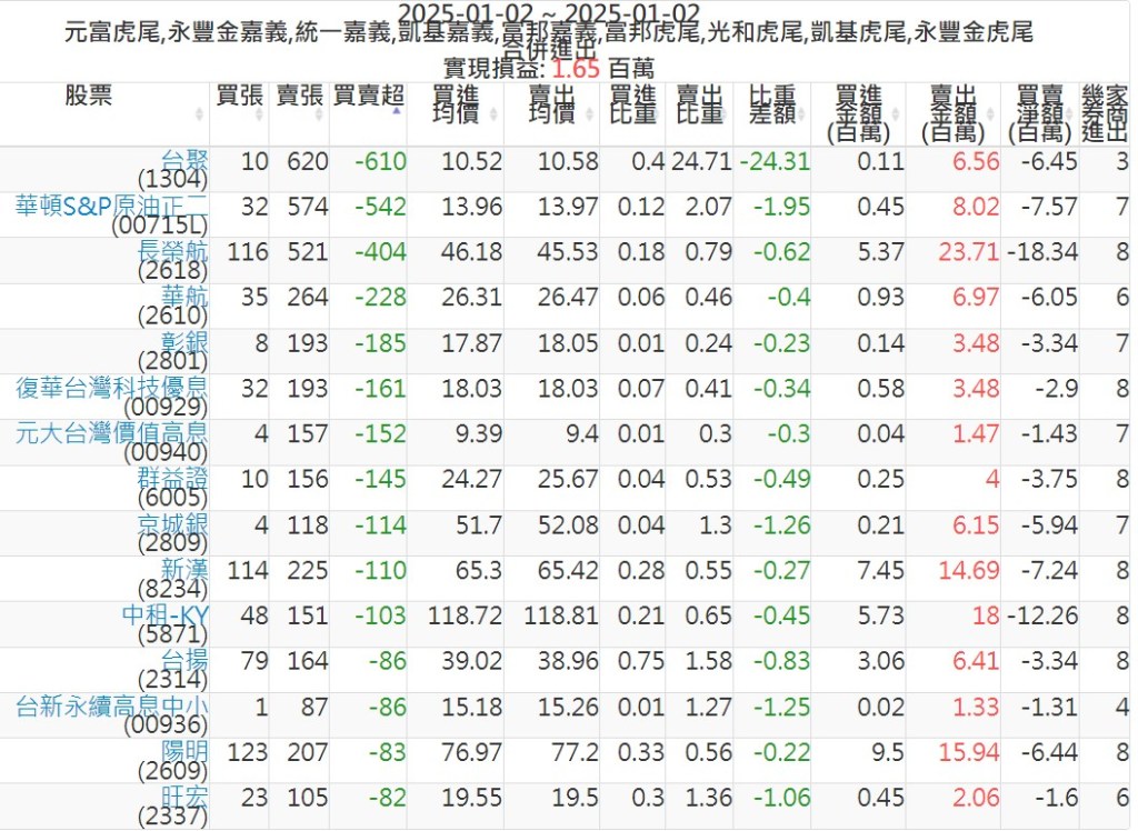 2025-0102主力買賣超個股 2025-01-02 股狗網小編 籌碼面每日資訊 發表留言 可參考下文 『如何查詢當沖、隔日沖分公司券商買賣』 主力當沖券商: 『元富虎尾』,『永豐金嘉義』,『統一嘉義』,『凱基嘉義』,『富邦嘉義』,『富邦虎尾』,『光和虎尾』,『凱基虎尾』,『永豐金虎尾』。 『當沖標的』 『買超股票』 『賣超股票』 免責宣言 本網站文章所提供資訊僅供參考,並無任何推介買賣之意,投資人應自行承擔交易風險。 分享此文: 按一下即可分享至 X(在新視窗中開啟) X 按一下以分享至 Facebook(在新視窗中開啟) Facebook 喜歡 正在載入...