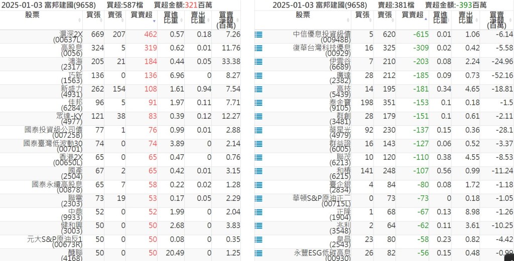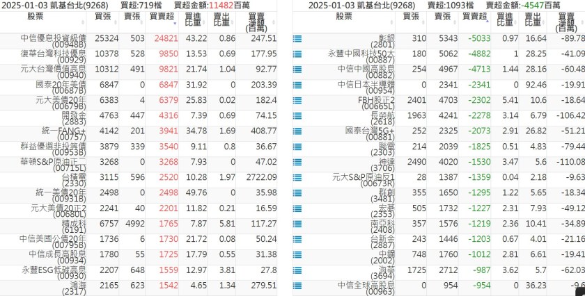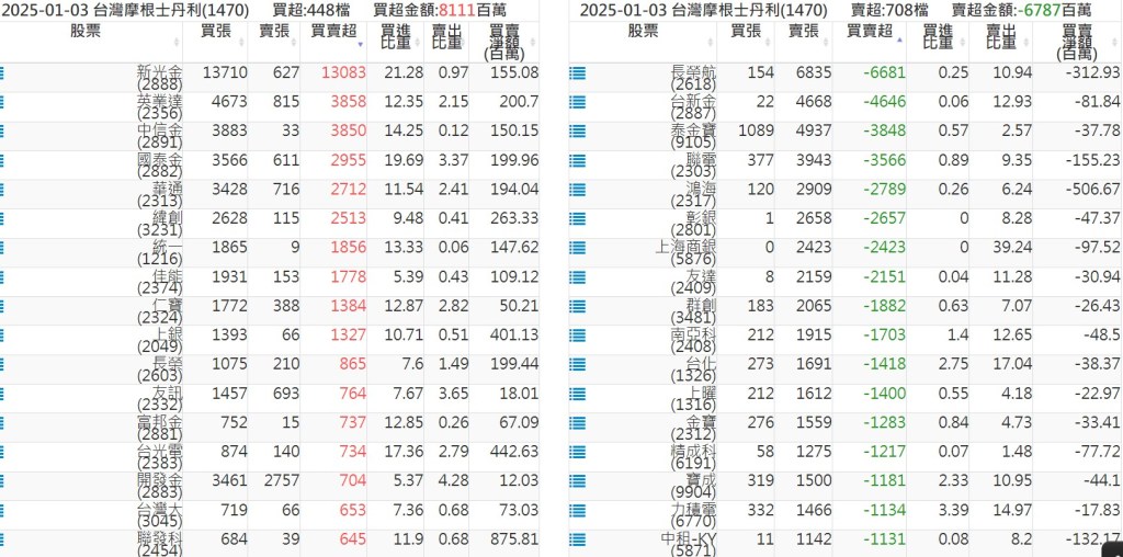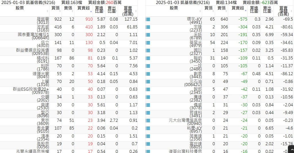 2025-0103關鍵券商買賣超 2025-01-03 股狗網小編 籌碼面每日資訊 發表留言 關鍵券商買賣超: 臺銀證券(1040): 台灣摩根士丹利(1470): 凱基台北(9268): 凱基信義(9216): 元大土城永寧(9875): 康和永和(845B) : 富邦建國(9658): 免責宣言 本網站文章所提供資訊僅供參考,並無任何推介買賣之意,投資人應自行承擔交易風險。 分享此文: 按一下即可分享至 X(在新視窗中開啟) X 按一下以分享至 Facebook(在新視窗中開啟) Facebook 喜歡 正在載入...