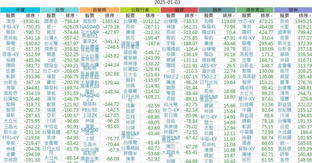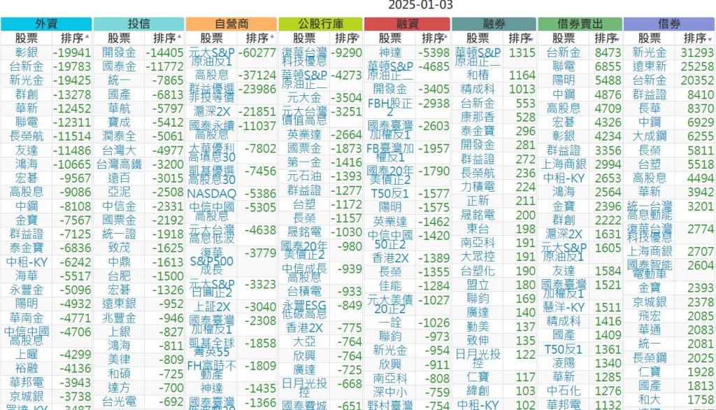 2025-0103【外資、投信】買賣超個股 2025-01-04 股狗網小編 投資誌-大盤 發表留言 上市:【外資、投信】買超(依金額) (單位:百萬) 上市:【外資、投信】賣超(依金額) (單位:百萬) 上市:【外資、投信】買超(依張數) (單位:張數) 上市:【外資、投信】賣超(依張數) (單位:張數) 免責宣言 本網站文章所提供資訊僅供參考,並無任何推介買賣之意,投資人應自行承擔交易風險。 分享此文: 按一下即可分享至 X(在新視窗中開啟) X 按一下以分享至 Facebook(在新視窗中開啟) Facebook 喜歡 正在載入...