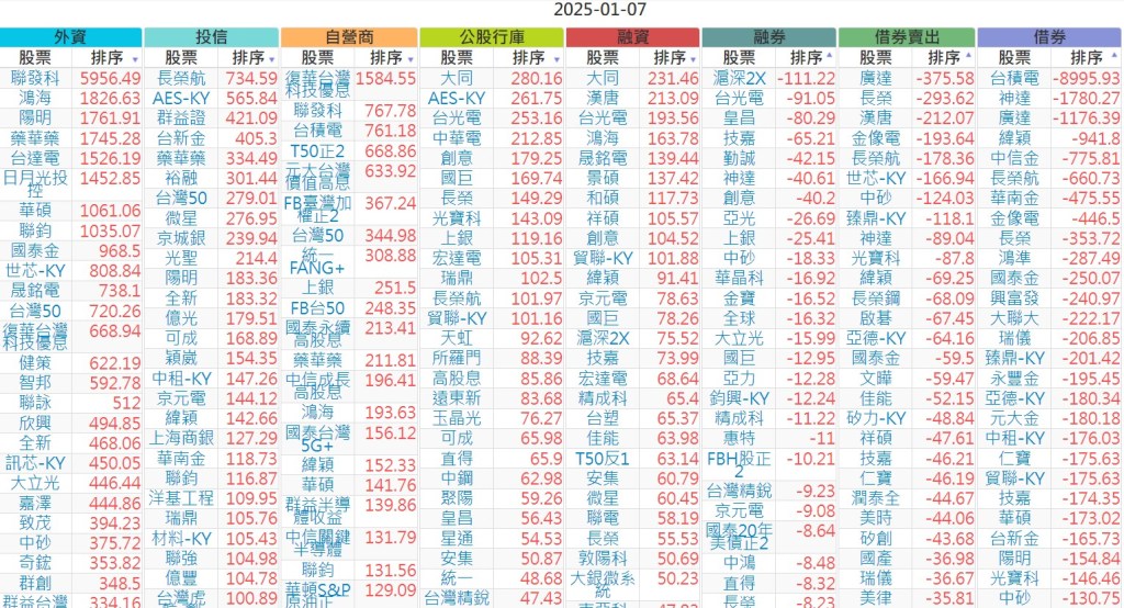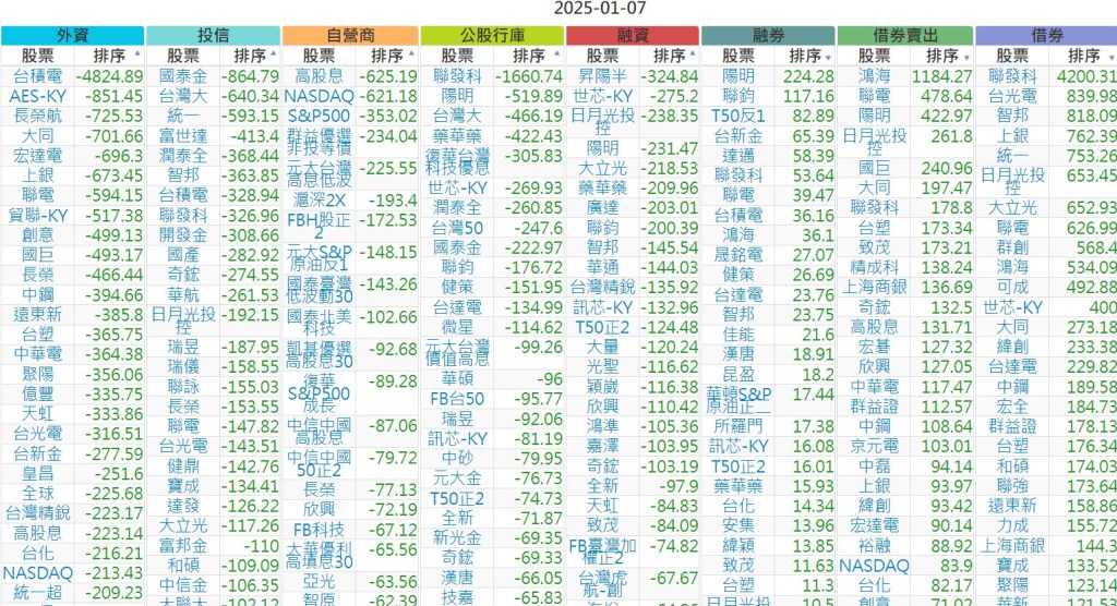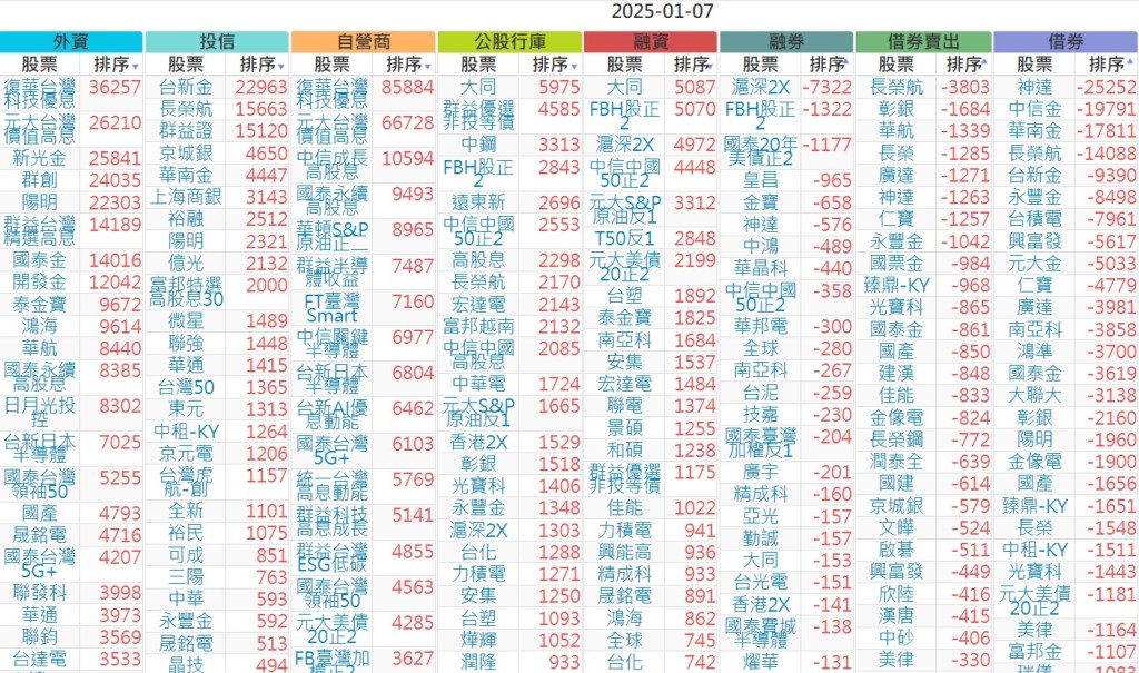 2025-0107【外資、投信】買賣超個股 2025-01-07 股狗網小編 投資誌-大盤 發表留言 上市:【外資、投信】買超(依金額) (單位:百萬) 上市:【外資、投信】賣超(依金額) (單位:百萬) 上市:【外資、投信】買超(依張數) (單位:張數) 上市:【外資、投信】賣超(依張數) (單位:張數) 免責宣言 本網站文章所提供資訊僅供參考,並無任何推介買賣之意,投資人應自行承擔交易風險。 分享此文: 分享到 X(在新視窗中開啟) X 分享到 Facebook(在新視窗中開啟) Facebook 喜歡 正在載入...