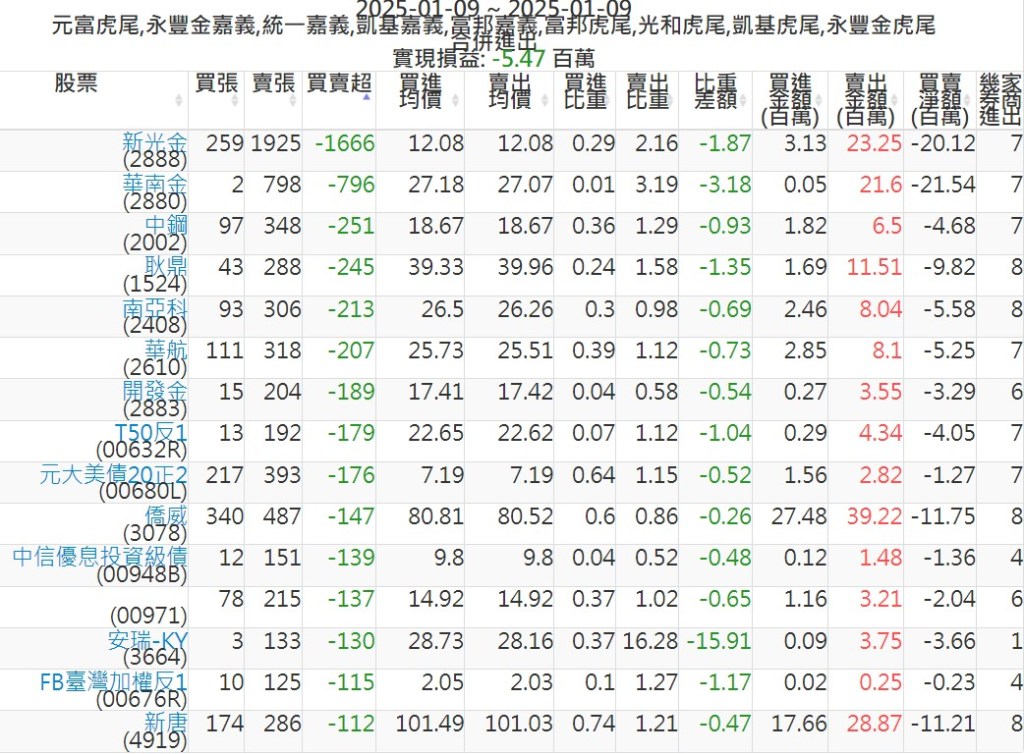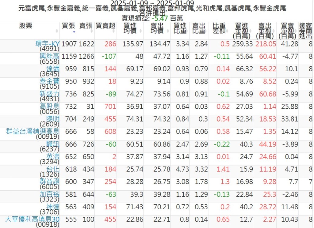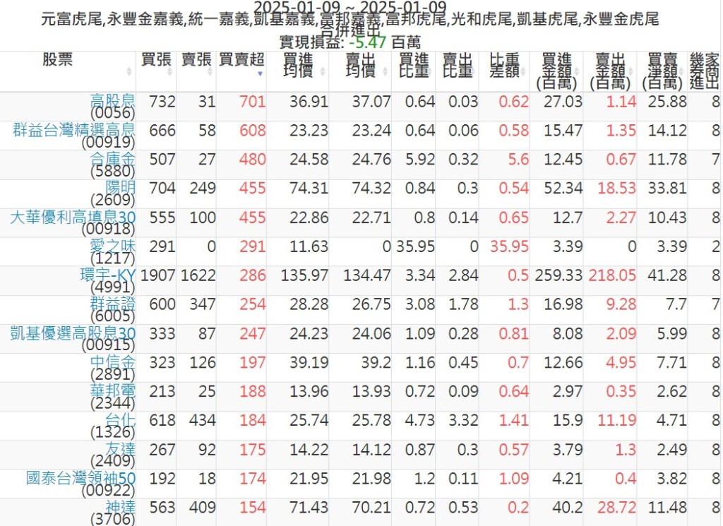 2025-0109主力買賣超個股 2025-01-09 股狗網小編 籌碼面每日資訊 發表留言 可參考下文 『如何查詢當沖、隔日沖分公司券商買賣』 主力當沖券商: 『元富虎尾』,『永豐金嘉義』,『統一嘉義』,『凱基嘉義』,『富邦嘉義』,『富邦虎尾』,『光和虎尾』,『凱基虎尾』,『永豐金虎尾』。 『當沖標的』 『買超股票』 『賣超股票』 免責宣言 本網站文章所提供資訊僅供參考,並無任何推介買賣之意,投資人應自行承擔交易風險。 分享此文: 按一下即可分享至 X(在新視窗中開啟) X 按一下以分享至 Facebook(在新視窗中開啟) Facebook 喜歡 正在載入...