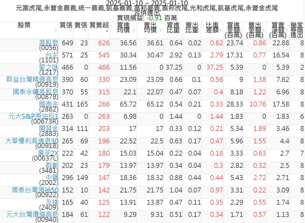 2025-0110主力買賣超個股 2025-01-10 股狗網小編 籌碼面每日資訊 發表留言 可參考下文 『如何查詢當沖、隔日沖分公司券商買賣』 主力當沖券商: 『元富虎尾』,『永豐金嘉義』,『統一嘉義』,『凱基嘉義』,『富邦嘉義』,『富邦虎尾』,『光和虎尾』,『凱基虎尾』,『永豐金虎尾』。 『當沖標的』 『買超股票』 『賣超股票』 免責宣言 本網站文章所提供資訊僅供參考,並無任何推介買賣之意,投資人應自行承擔交易風險。 分享此文: 按一下即可分享至 X(在新視窗中開啟) X 按一下以分享至 Facebook(在新視窗中開啟) Facebook 喜歡 正在載入...