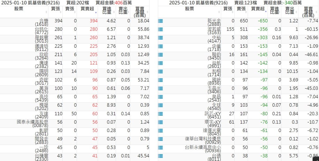 2025-0110關鍵券商買賣超 2025-01-10 股狗網小編 籌碼面每日資訊 發表留言 關鍵券商買賣超: 臺銀證券(1040): 台灣摩根士丹利(1470): 凱基台北(9268): 凱基信義(9216): 元大土城永寧(9875): 康和永和(845B) : 富邦建國(9658): 免責宣言 本網站文章所提供資訊僅供參考,並無任何推介買賣之意,投資人應自行承擔交易風險。 分享此文: 按一下即可分享至 X(在新視窗中開啟) X 按一下以分享至 Facebook(在新視窗中開啟) Facebook 喜歡 正在載入...