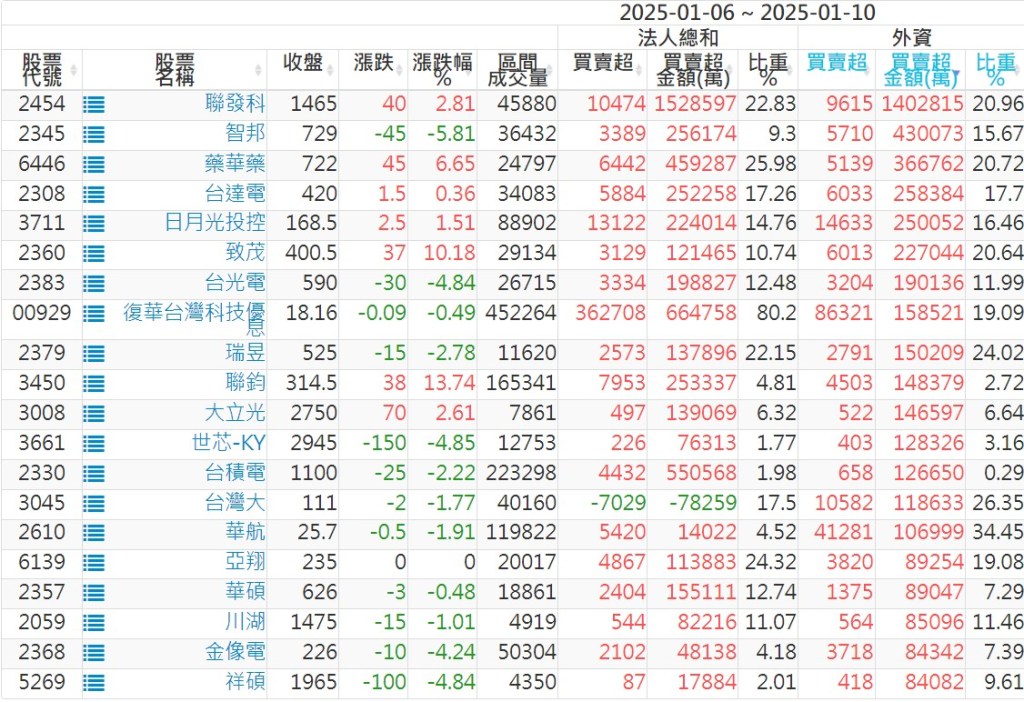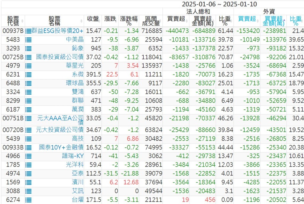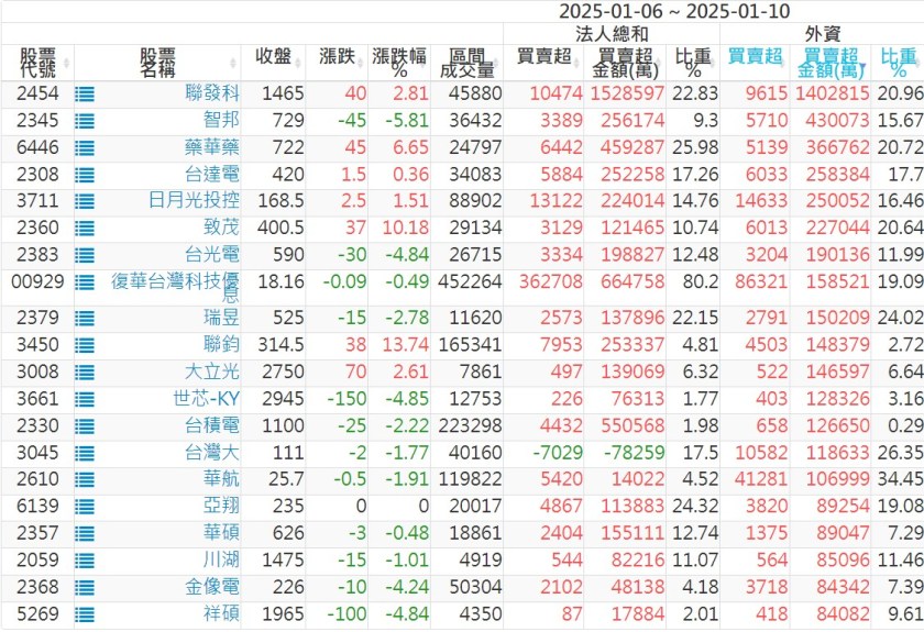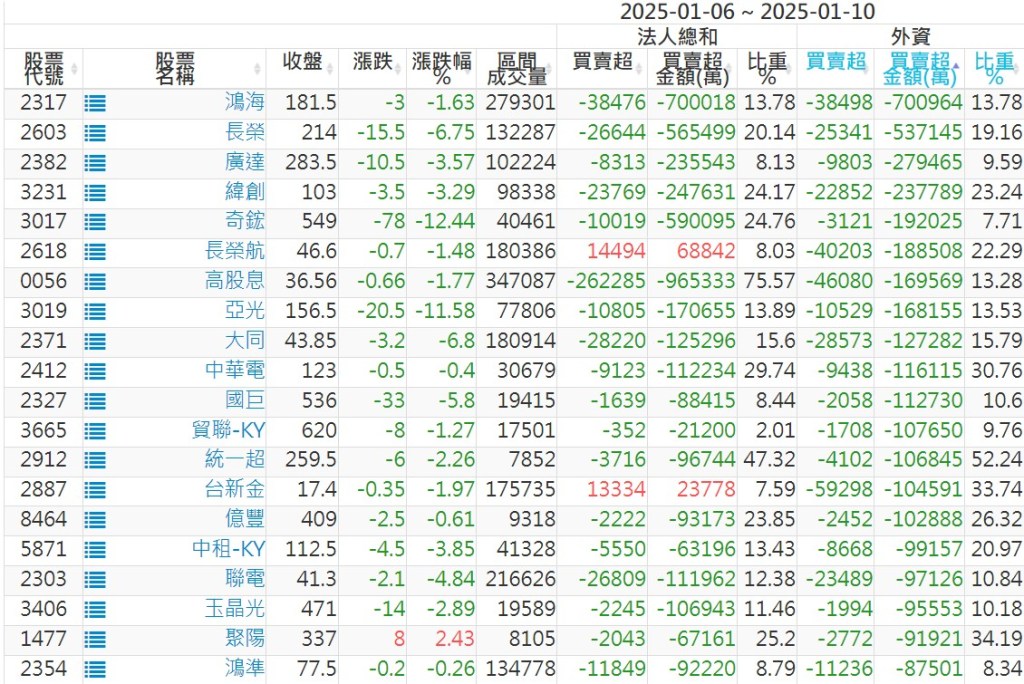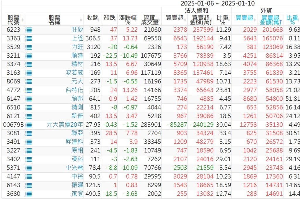 2025/01/06~2025/01/10近5日【外資】買賣超個股 2025-01-13 股狗網小編 投資誌-大盤 發表留言 外資本周累積【買超】約6億元。 【上市外資買超個股】(以金額排行,單位:萬) 【上市外資賣超個股】(以金額排行,單位:萬) 【上櫃外資買超個股】(以金額排行,單位:萬) 【上櫃外資賣超個股】(以金額排行,單位:萬) 免責宣言 本網站文章所提供資訊僅供參考,並無任何推介買賣之意,投資人應自行承擔交易風險。 分享此文: 分享到 X(在新視窗中開啟) X 分享到 Facebook(在新視窗中開啟) Facebook 喜歡 正在載入...