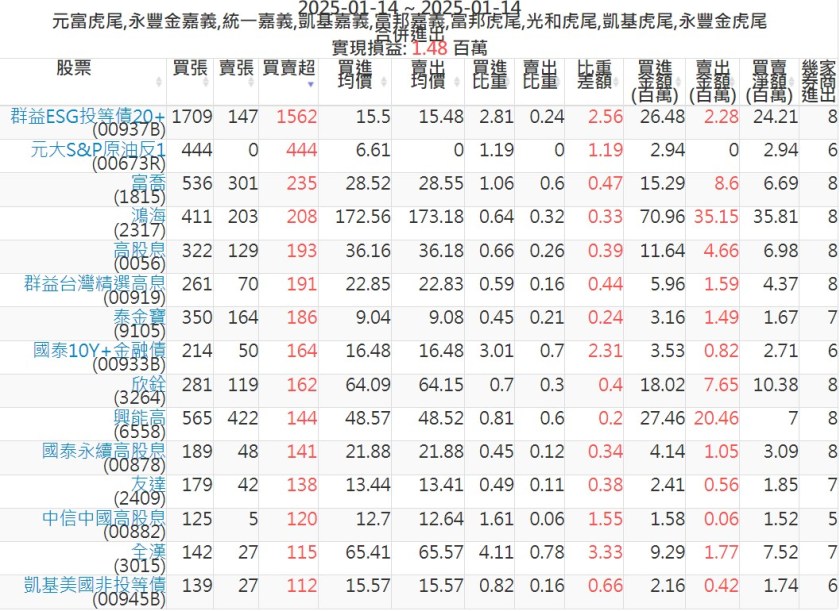 2025-0114主力買賣超個股 2025-01-14 股狗網小編 籌碼面每日資訊 發表留言 可參考下文 『如何查詢當沖、隔日沖分公司券商買賣』 主力當沖券商: 『元富虎尾』,『永豐金嘉義』,『統一嘉義』,『凱基嘉義』,『富邦嘉義』,『富邦虎尾』,『光和虎尾』,『凱基虎尾』,『永豐金虎尾』。 『當沖標的』 『買超股票』 『賣超股票』 免責宣言 本網站文章所提供資訊僅供參考,並無任何推介買賣之意,投資人應自行承擔交易風險。 分享此文: 按一下即可分享至 X(在新視窗中開啟) X 按一下以分享至 Facebook(在新視窗中開啟) Facebook 喜歡 正在載入...