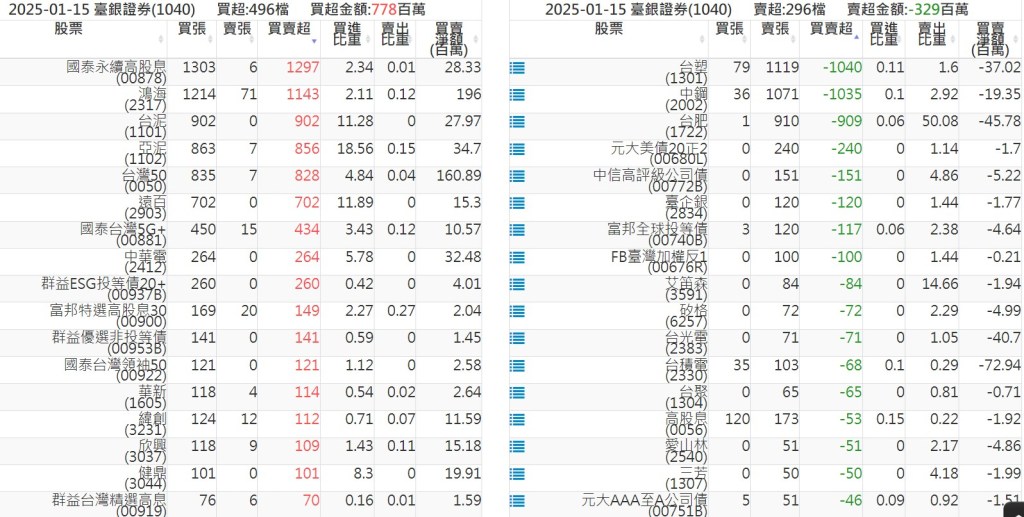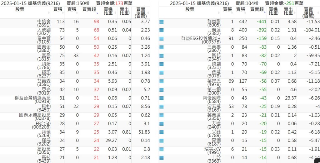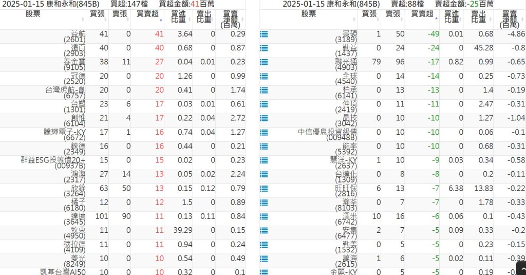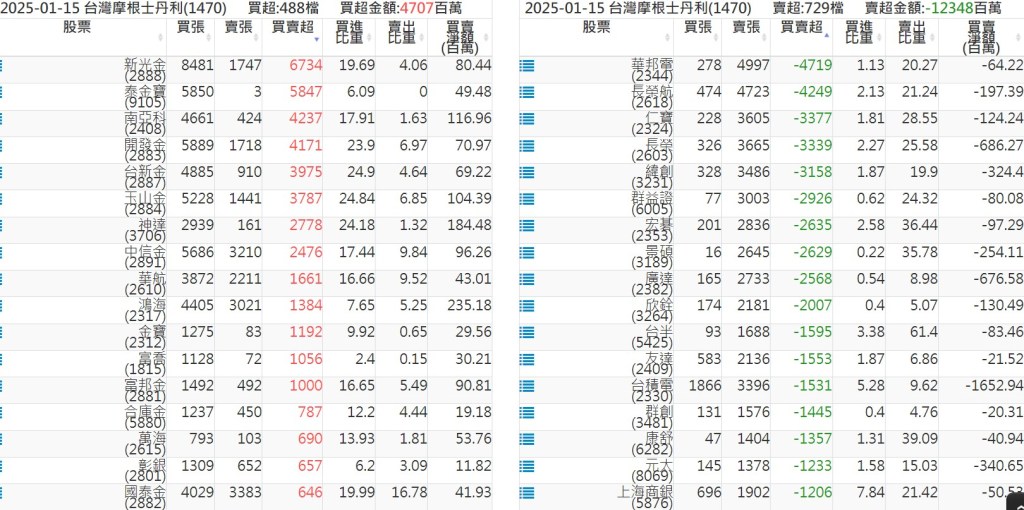 2025-0115關鍵券商買賣超 2025-01-15 股狗網小編 籌碼面每日資訊 發表留言 關鍵券商買賣超: 臺銀證券(1040): 台灣摩根士丹利(1470): 凱基台北(9268): 凱基信義(9216): 元大土城永寧(9875): 康和永和(845B) : 富邦建國(9658): 免責宣言 本網站文章所提供資訊僅供參考,並無任何推介買賣之意,投資人應自行承擔交易風險。 分享此文: 按一下即可分享至 X(在新視窗中開啟) X 按一下以分享至 Facebook(在新視窗中開啟) Facebook 喜歡 正在載入...
