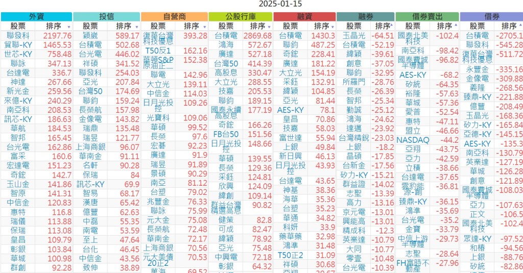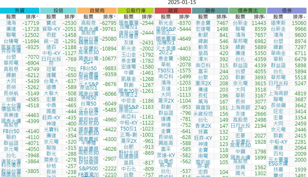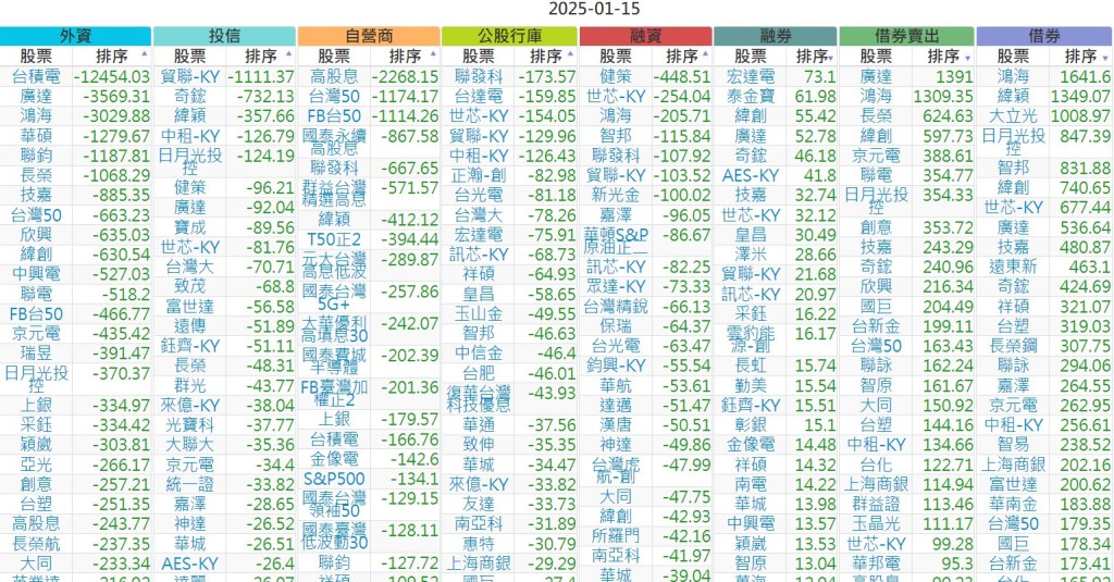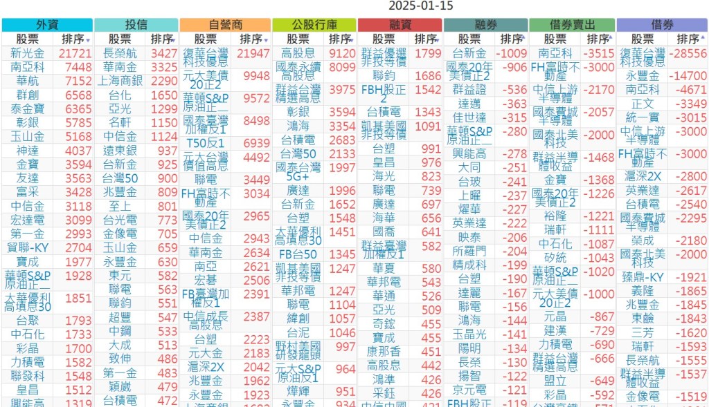 2025-0115【外資、投信】買賣超個股 2025-01-16 股狗網小編 投資誌-大盤 發表留言 上市:【外資、投信】買超(依金額) (單位:百萬) 上市:【外資、投信】賣超(依金額) (單位:百萬) 上市:【外資、投信】買超(依張數) (單位:張數) 上市:【外資、投信】賣超(依張數) (單位:張數) 免責宣言 本網站文章所提供資訊僅供參考,並無任何推介買賣之意,投資人應自行承擔交易風險。 分享此文: 按一下即可分享至 X(在新視窗中開啟) X 按一下以分享至 Facebook(在新視窗中開啟) Facebook 喜歡 正在載入...