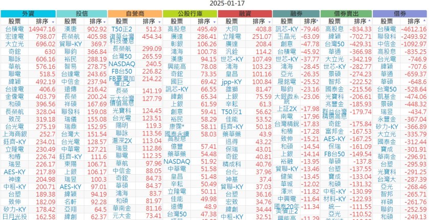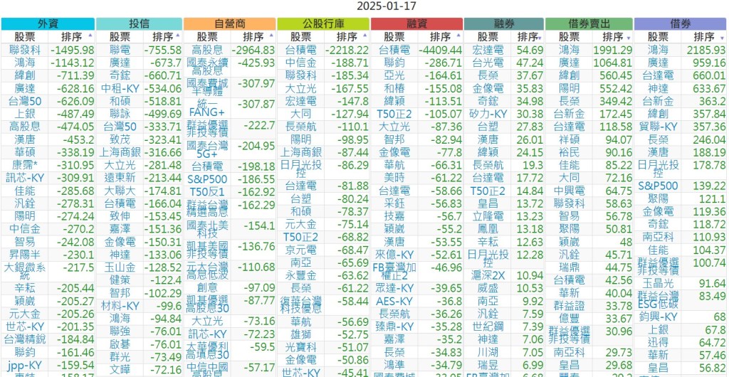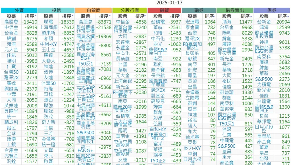 2025-0117【外資、投信】買賣超個股 2025-01-18 股狗網小編 投資誌-大盤 發表留言 上市:【外資、投信】買超(依金額) (單位:百萬) 上市:【外資、投信】賣超(依金額) (單位:百萬) 上市:【外資、投信】買超(依張數) (單位:張數) 上市:【外資、投信】賣超(依張數) (單位:張數) 免責宣言 本網站文章所提供資訊僅供參考,並無任何推介買賣之意,投資人應自行承擔交易風險。 分享此文: 按一下即可分享至 X(在新視窗中開啟) X 按一下以分享至 Facebook(在新視窗中開啟) Facebook 喜歡 正在載入...