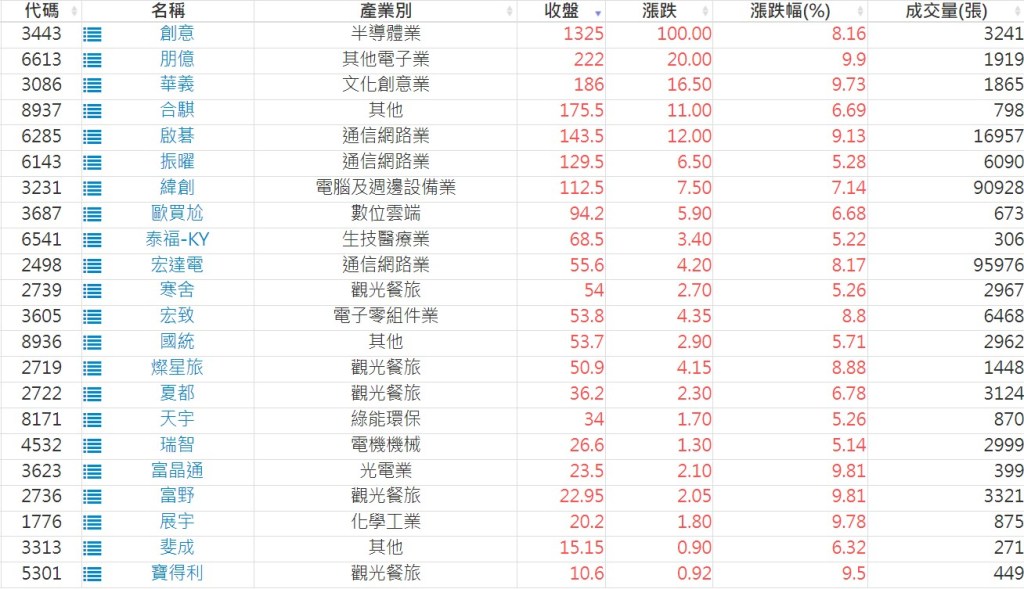 2025-0120日新高爆量上漲股 2025-01-20 股狗網小編 選股條件 發表留言 利用股狗選股的選股條件可以【挑選突破20日新高,爆量上漲起漲點股票】 1.股狗選股 https://www.stockdog.com.tw 2.選股條件: a.收盤價創20日新高 b.當日漲幅 > 2% C.成交量大於5日均量2倍 免責宣言 本網站文章所提供資訊僅供參考,並無任何推介買賣之意,投資人應自行承擔交易風險。 分享此文: 按一下即可分享至 X(在新視窗中開啟) X 按一下以分享至 Facebook(在新視窗中開啟) Facebook 喜歡 正在載入...