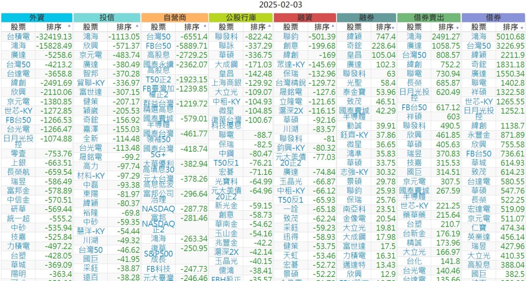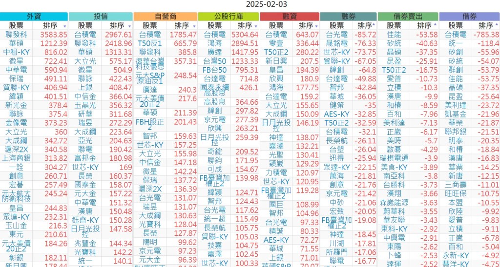 2025-0203【外資、投信】買賣超個股 2025-02-03 股狗網小編 投資誌-大盤 發表留言 上市:【外資、投信】買超(依金額) (單位:百萬) 上市:【外資、投信】賣超(依金額) (單位:百萬) 上市:【外資、投信】買超(依張數) (單位:張數) 上市:【外資、投信】賣超(依張數) (單位:張數) 免責宣言 本網站文章所提供資訊僅供參考,並無任何推介買賣之意,投資人應自行承擔交易風險。 分享此文: 分享到 X(在新視窗中開啟) X 分享到 Facebook(在新視窗中開啟) Facebook 喜歡 正在載入...