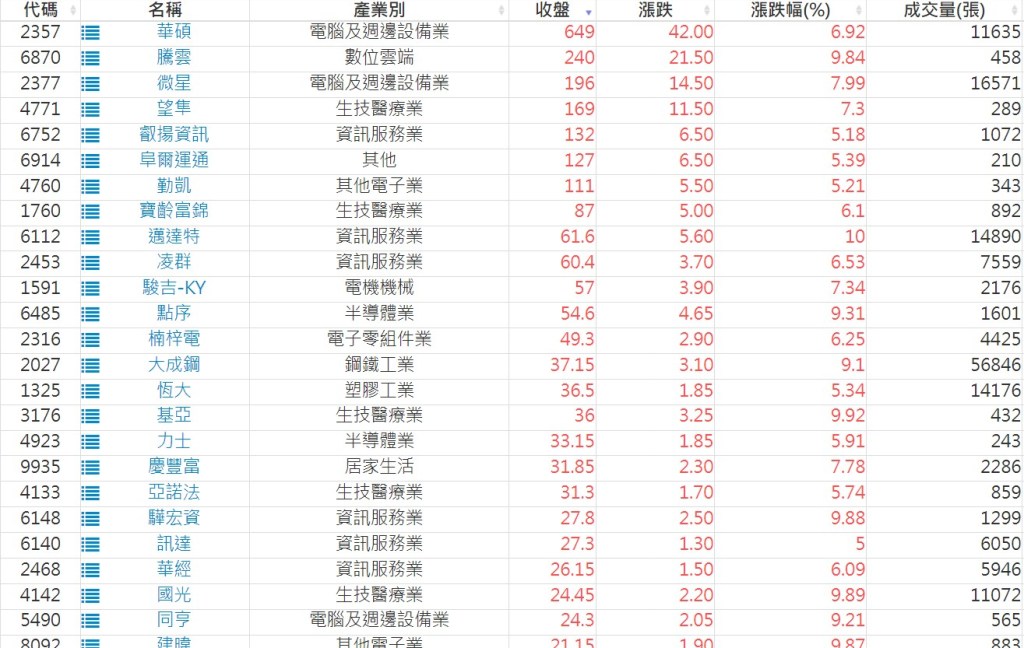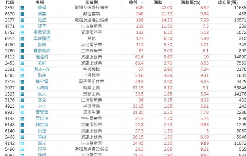 2025-0203日新高爆量上漲股 2025-02-03 股狗網小編 選股條件 發表留言 利用股狗選股的選股條件可以【挑選突破20日新高,爆量上漲起漲點股票】 1.股狗選股 https://www.stockdog.com.tw 2.選股條件: a.收盤價創20日新高 b.當日漲幅 > 2% C.成交量大於5日均量2倍 免責宣言 本網站文章所提供資訊僅供參考,並無任何推介買賣之意,投資人應自行承擔交易風險。 分享此文: 按一下即可分享至 X(在新視窗中開啟) X 按一下以分享至 Facebook(在新視窗中開啟) Facebook 喜歡 正在載入...