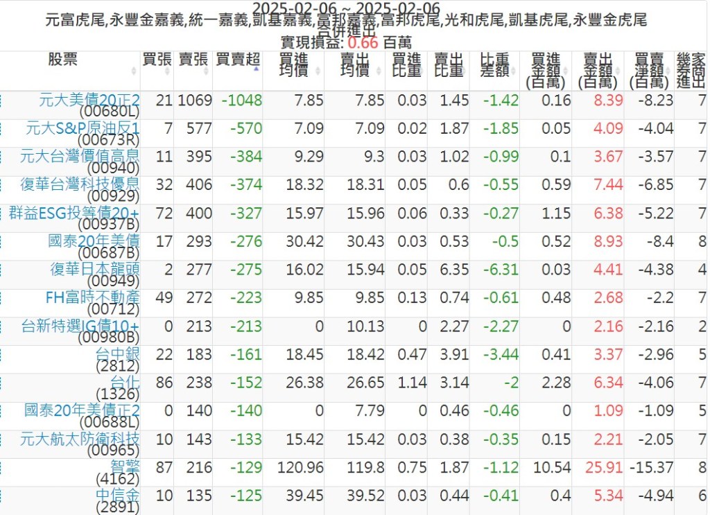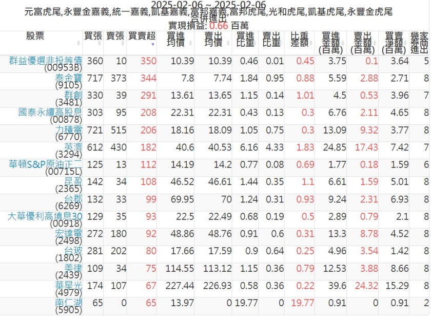 2025-0206主力買賣超個股 2025-02-06 股狗網小編 籌碼面每日資訊 發表留言 可參考下文 『如何查詢當沖、隔日沖分公司券商買賣』 主力當沖券商: 『元富虎尾』,『永豐金嘉義』,『統一嘉義』,『凱基嘉義』,『富邦嘉義』,『富邦虎尾』,『光和虎尾』,『凱基虎尾』,『永豐金虎尾』。 『當沖標的』 『買超股票』 『賣超股票』 免責宣言 本網站文章所提供資訊僅供參考,並無任何推介買賣之意,投資人應自行承擔交易風險。 分享此文: 按一下即可分享至 X(在新視窗中開啟) X 按一下以分享至 Facebook(在新視窗中開啟) Facebook 喜歡 正在載入...