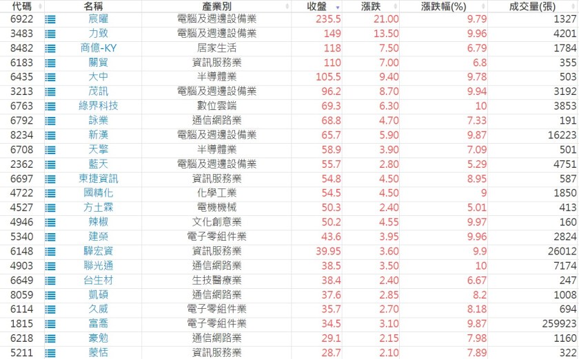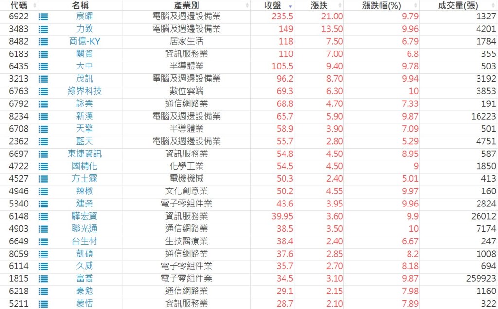 2025-0207日新高爆量上漲股 2025-02-07 股狗網小編 選股條件 發表留言 利用股狗選股的選股條件可以【挑選突破20日新高,爆量上漲起漲點股票】 1.股狗選股 https://www.stockdog.com.tw 2.選股條件: a.收盤價創20日新高 b.當日漲幅 > 2% C.成交量大於5日均量2倍 免責宣言 本網站文章所提供資訊僅供參考,並無任何推介買賣之意,投資人應自行承擔交易風險。 分享此文: 按一下即可分享至 X(在新視窗中開啟) X 按一下以分享至 Facebook(在新視窗中開啟) Facebook 喜歡 正在載入...