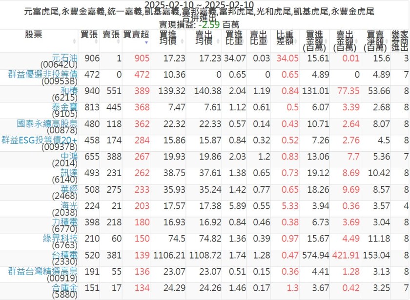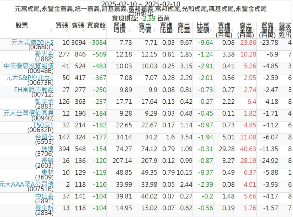 2025-0210主力買賣超個股 2025-02-10 股狗網小編 籌碼面每日資訊 發表留言 可參考下文 『如何查詢當沖、隔日沖分公司券商買賣』 主力當沖券商: 『元富虎尾』,『永豐金嘉義』,『統一嘉義』,『凱基嘉義』,『富邦嘉義』,『富邦虎尾』,『光和虎尾』,『凱基虎尾』,『永豐金虎尾』。 『當沖標的』 『買超股票』 『賣超股票』 免責宣言 本網站文章所提供資訊僅供參考,並無任何推介買賣之意,投資人應自行承擔交易風險。 分享此文: 按一下即可分享至 X(在新視窗中開啟) X 按一下以分享至 Facebook(在新視窗中開啟) Facebook 喜歡 正在載入...