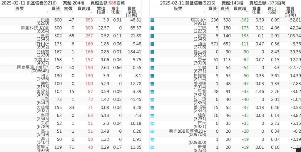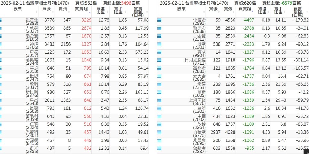 2025-0211關鍵券商買賣超 2025-02-11 股狗網小編 籌碼面每日資訊 發表留言 關鍵券商買賣超: 臺銀證券(1040): 台灣摩根士丹利(1470): 凱基台北(9268): 凱基信義(9216): 元大土城永寧(9875): 康和永和(845B) : 富邦建國(9658): 免責宣言 本網站文章所提供資訊僅供參考,並無任何推介買賣之意,投資人應自行承擔交易風險。 分享此文: 按一下即可分享至 X(在新視窗中開啟) X 按一下以分享至 Facebook(在新視窗中開啟) Facebook 喜歡 正在載入...
