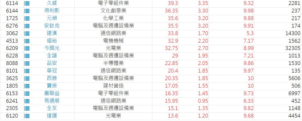 2025-0212日新高爆量上漲股 2025-02-12 股狗網小編 選股條件 發表留言 利用股狗選股的選股條件可以【挑選突破20日新高,爆量上漲起漲點股票】 1.股狗選股 https://www.stockdog.com.tw 2.選股條件: a.收盤價創20日新高 b.當日漲幅 > 2% C.成交量大於5日均量2倍 免責宣言 本網站文章所提供資訊僅供參考,並無任何推介買賣之意,投資人應自行承擔交易風險。 分享此文: 按一下即可分享至 X(在新視窗中開啟) X 按一下以分享至 Facebook(在新視窗中開啟) Facebook 喜歡 正在載入...