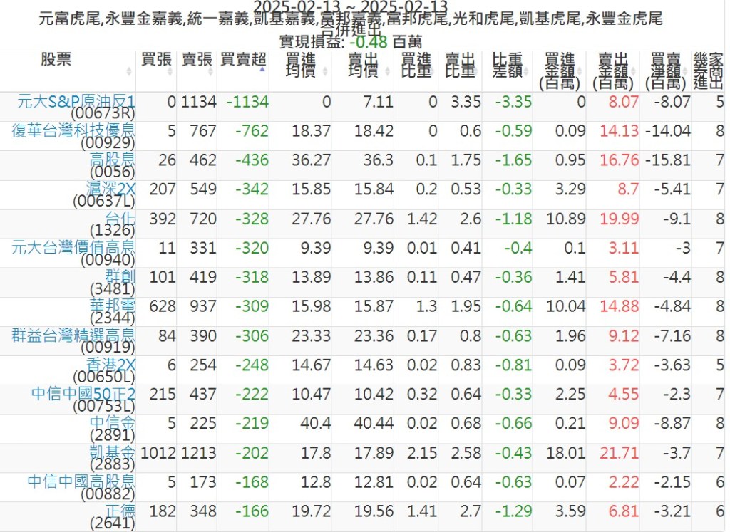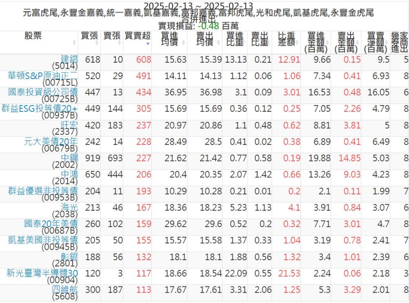 2025-0213主力買賣超個股 2025-02-13 股狗網小編 籌碼面每日資訊 發表留言 可參考下文 『如何查詢當沖、隔日沖分公司券商買賣』 主力當沖券商: 『元富虎尾』,『永豐金嘉義』,『統一嘉義』,『凱基嘉義』,『富邦嘉義』,『富邦虎尾』,『光和虎尾』,『凱基虎尾』,『永豐金虎尾』。 『當沖標的』 『買超股票』 『賣超股票』 免責宣言 本網站文章所提供資訊僅供參考,並無任何推介買賣之意,投資人應自行承擔交易風險。 分享此文: 按一下即可分享至 X(在新視窗中開啟) X 按一下以分享至 Facebook(在新視窗中開啟) Facebook 喜歡 正在載入...