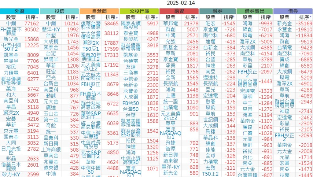 2025-0214【外資、投信】買賣超個股 2025-02-14 股狗網小編 投資誌-大盤 發表留言 上市:【外資、投信】買超(依金額) (單位:百萬) 上市:【外資、投信】賣超(依金額) (單位:百萬) 上市:【外資、投信】買超(依張數) (單位:張數) 上市:【外資、投信】賣超(依張數) (單位:張數) 免責宣言 本網站文章所提供資訊僅供參考,並無任何推介買賣之意,投資人應自行承擔交易風險。 分享此文: 按一下即可分享至 X(在新視窗中開啟) X 按一下以分享至 Facebook(在新視窗中開啟) Facebook 喜歡 正在載入...