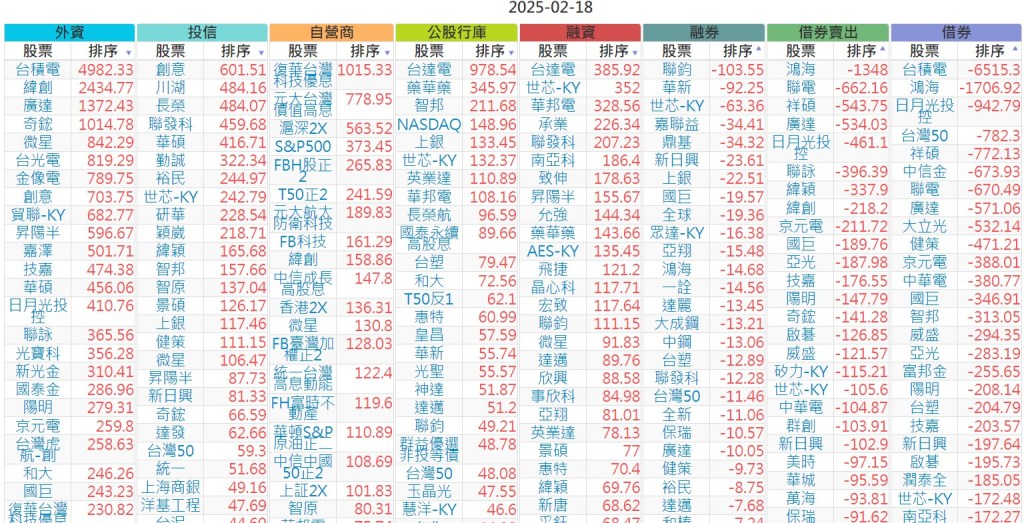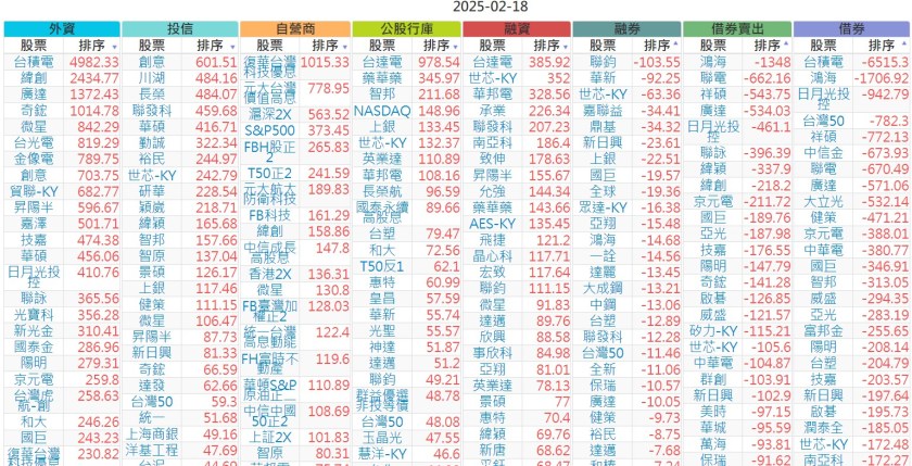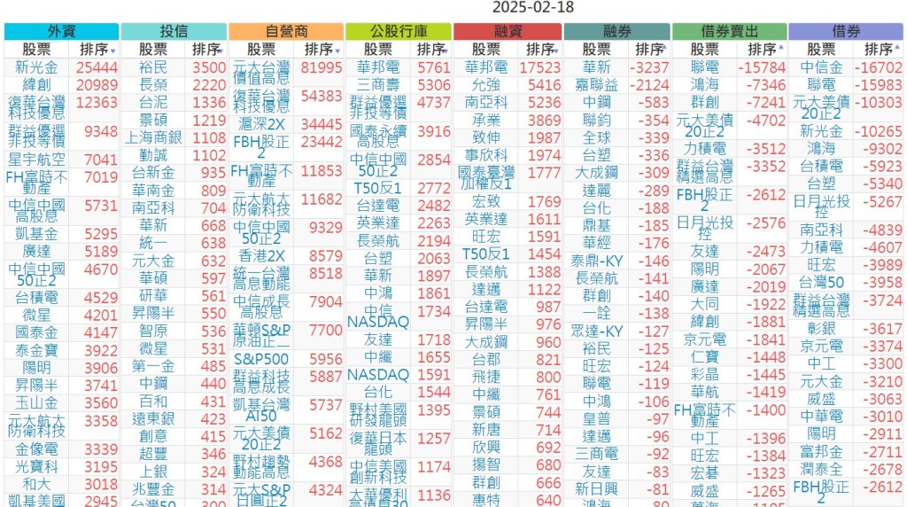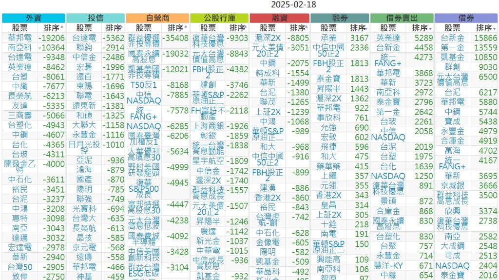 2025-0218【外資、投信】買賣超個股 2025-02-18 股狗網小編 投資誌-大盤 發表留言 上市:【外資、投信】買超(依金額) (單位:百萬) 上市:【外資、投信】賣超(依金額) (單位:百萬) 上市:【外資、投信】買超(依張數) (單位:張數) 上市:【外資、投信】賣超(依張數) (單位:張數) 免責宣言 本網站文章所提供資訊僅供參考,並無任何推介買賣之意,投資人應自行承擔交易風險。 分享此文: 按一下即可分享至 X(在新視窗中開啟) X 按一下以分享至 Facebook(在新視窗中開啟) Facebook 喜歡 正在載入...