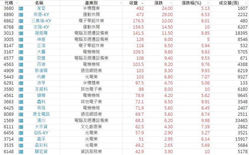 2025-0219日新高爆量上漲股 2025-02-19 股狗網小編 選股條件 發表留言 利用股狗選股的選股條件可以【挑選突破20日新高,爆量上漲起漲點股票】 1.股狗選股 https://www.stockdog.com.tw 2.選股條件: a.收盤價創20日新高 b.當日漲幅 > 2% C.成交量大於5日均量2倍 免責宣言 本網站文章所提供資訊僅供參考,並無任何推介買賣之意,投資人應自行承擔交易風險。 分享此文: 按一下即可分享至 X(在新視窗中開啟) X 按一下以分享至 Facebook(在新視窗中開啟) Facebook 喜歡 正在載入...