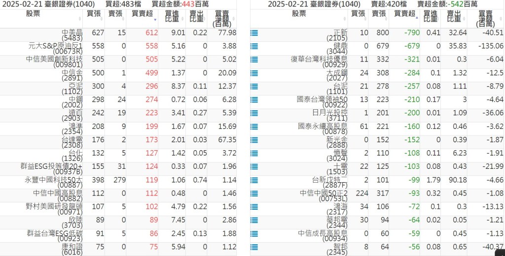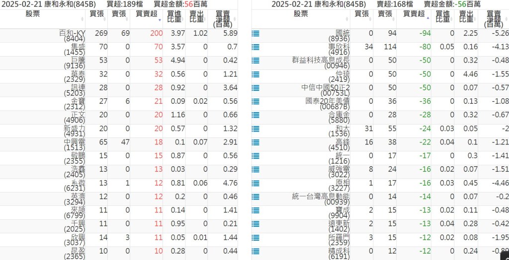 2025-0221關鍵券商買賣超 2025-02-21 股狗網小編 籌碼面每日資訊 發表留言 關鍵券商買賣超: 臺銀證券(1040): 台灣摩根士丹利(1470): 凱基台北(9268): 凱基信義(9216): 元大土城永寧(9875): 康和永和(845B) : 富邦建國(9658): 免責宣言 本網站文章所提供資訊僅供參考,並無任何推介買賣之意,投資人應自行承擔交易風險。 分享此文: 按一下即可分享至 X(在新視窗中開啟) X 按一下以分享至 Facebook(在新視窗中開啟) Facebook 喜歡 正在載入...