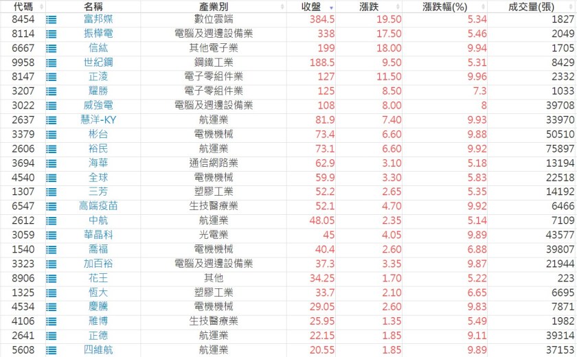 2025-0224日新高爆量上漲股 2025-02-24 股狗網小編 選股條件 發表留言 利用股狗選股的選股條件可以【挑選突破20日新高,爆量上漲起漲點股票】 1.股狗選股 https://www.stockdog.com.tw 2.選股條件: a.收盤價創20日新高 b.當日漲幅 > 2% C.成交量大於5日均量2倍 免責宣言 本網站文章所提供資訊僅供參考,並無任何推介買賣之意,投資人應自行承擔交易風險。 分享此文: 按一下即可分享至 X(在新視窗中開啟) X 按一下以分享至 Facebook(在新視窗中開啟) Facebook 喜歡 正在載入...