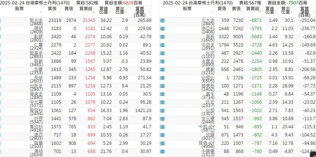 2025-0224關鍵券商買賣超 2025-02-24 股狗網小編 籌碼面每日資訊 發表留言 關鍵券商買賣超: 臺銀證券(1040): 台灣摩根士丹利(1470): 凱基台北(9268): 凱基信義(9216): 元大土城永寧(9875): 康和永和(845B) : 富邦建國(9658): 免責宣言 本網站文章所提供資訊僅供參考,並無任何推介買賣之意,投資人應自行承擔交易風險。 分享此文: 按一下即可分享至 X(在新視窗中開啟) X 按一下以分享至 Facebook(在新視窗中開啟) Facebook 喜歡 正在載入...