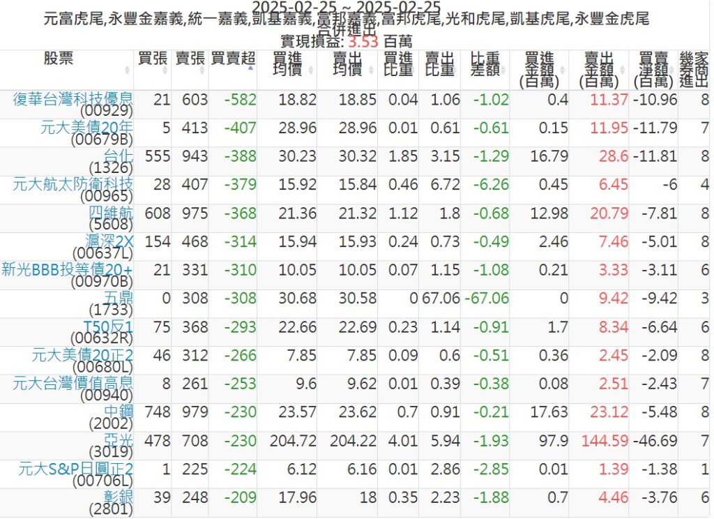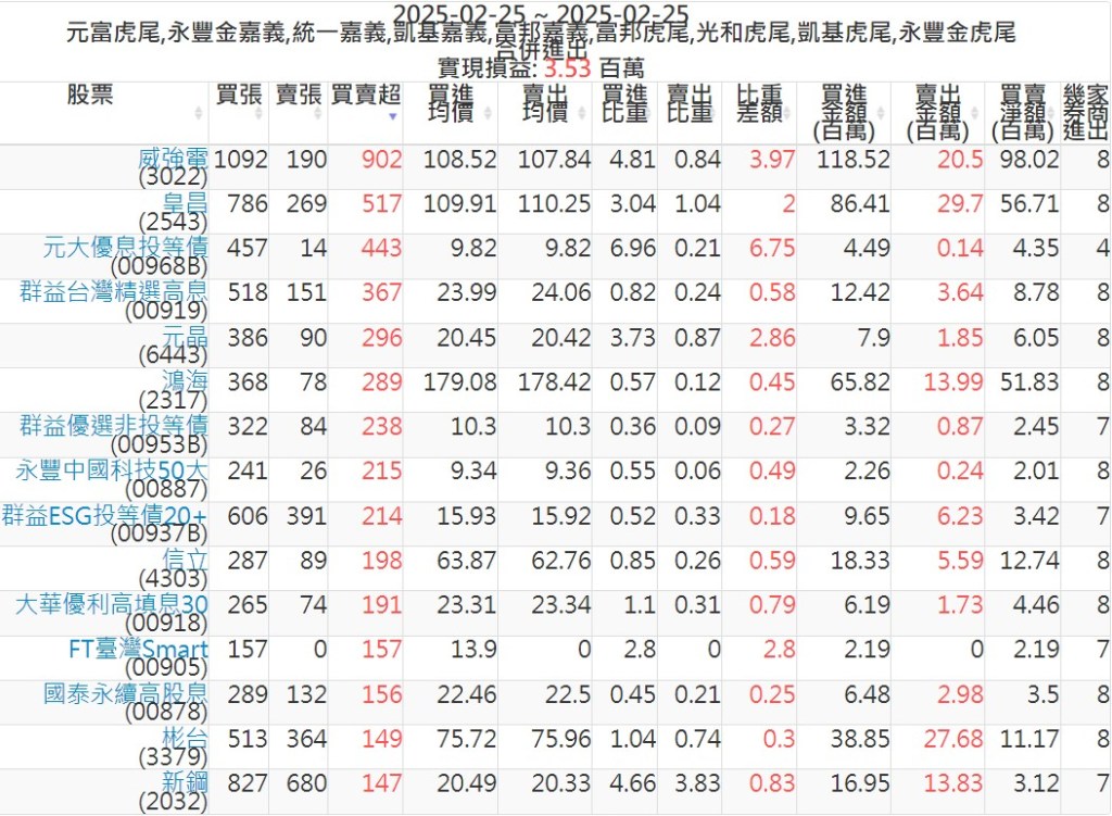 2025-0225主力買賣超個股 2025-02-25 股狗網小編 籌碼面每日資訊 發表留言 可參考下文 『如何查詢當沖、隔日沖分公司券商買賣』 主力當沖券商: 『元富虎尾』,『永豐金嘉義』,『統一嘉義』,『凱基嘉義』,『富邦嘉義』,『富邦虎尾』,『光和虎尾』,『凱基虎尾』,『永豐金虎尾』。 『當沖標的』 『買超股票』 『賣超股票』 免責宣言 本網站文章所提供資訊僅供參考,並無任何推介買賣之意,投資人應自行承擔交易風險。 分享此文: 按一下即可分享至 X(在新視窗中開啟) X 按一下以分享至 Facebook(在新視窗中開啟) Facebook 喜歡 正在載入...