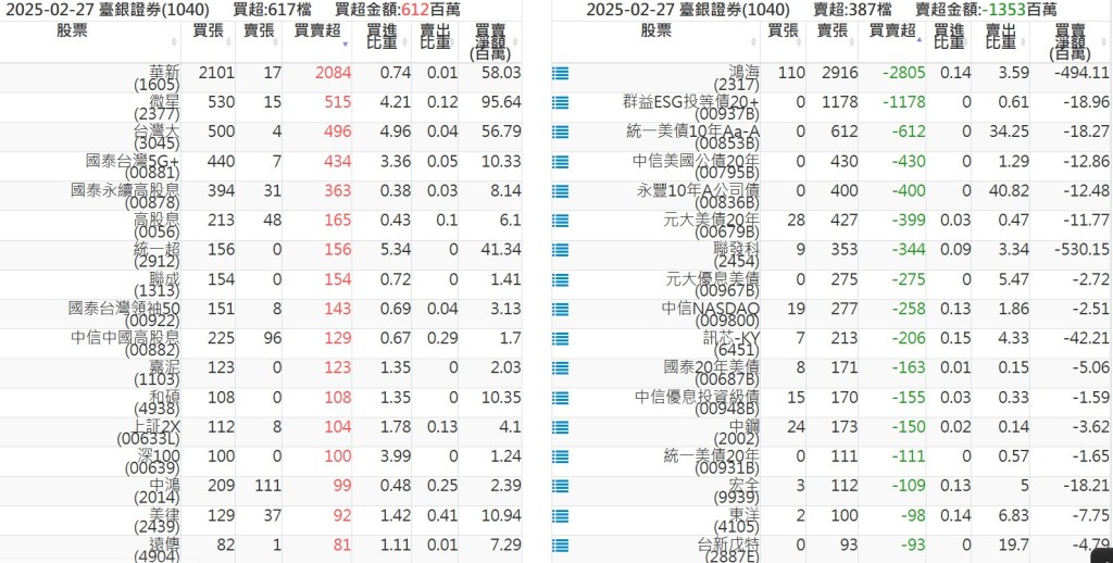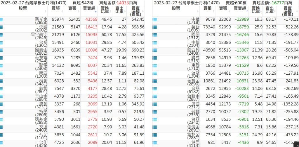 2025-0227關鍵券商買賣超 2025-02-27 股狗網小編 籌碼面每日資訊 發表留言 關鍵券商買賣超: 臺銀證券(1040): 台灣摩根士丹利(1470): 凱基台北(9268): 凱基信義(9216): 元大土城永寧(9875): 康和永和(845B) : 富邦建國(9658): 免責宣言 本網站文章所提供資訊僅供參考,並無任何推介買賣之意,投資人應自行承擔交易風險。 分享此文: 按一下即可分享至 X(在新視窗中開啟) X 按一下以分享至 Facebook(在新視窗中開啟) Facebook 喜歡 正在載入...