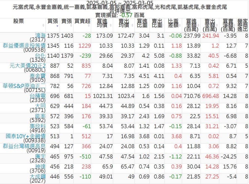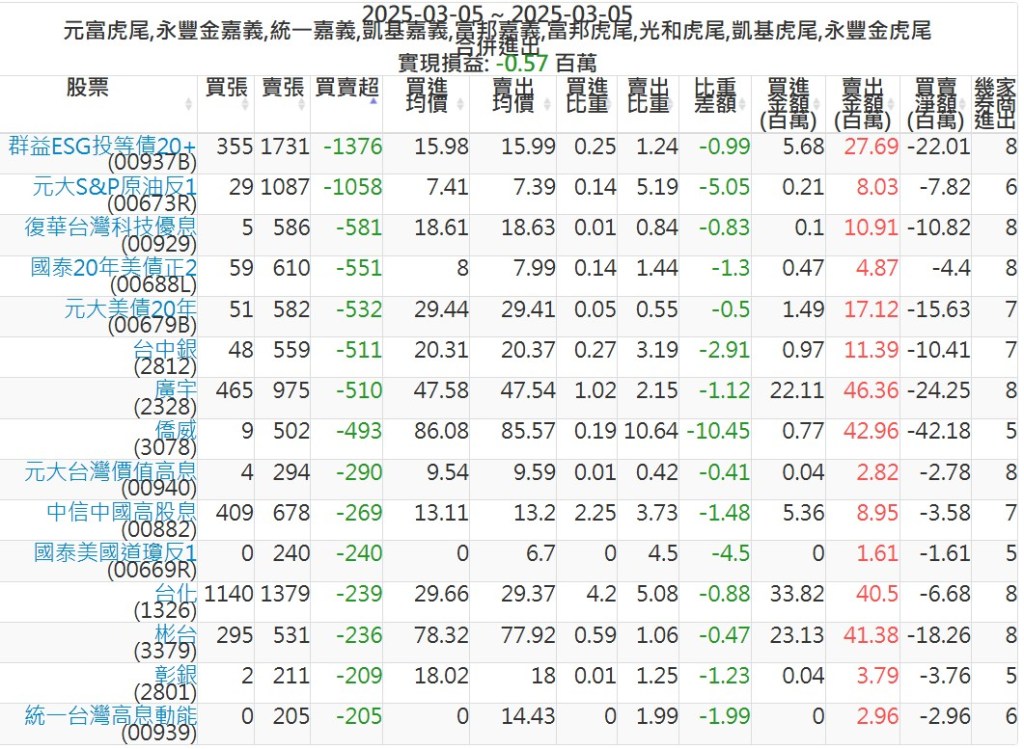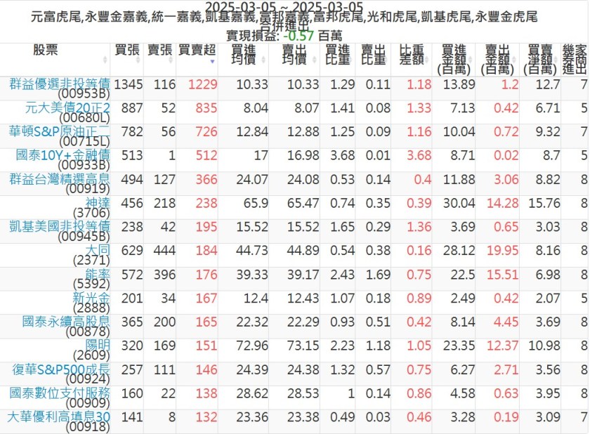 2025-0305主力買賣超個股 2025-03-05 股狗網小編 籌碼面每日資訊 發表留言 可參考下文 『如何查詢當沖、隔日沖分公司券商買賣』 主力當沖券商: 『元富虎尾』,『永豐金嘉義』,『統一嘉義』,『凱基嘉義』,『富邦嘉義』,『富邦虎尾』,『光和虎尾』,『凱基虎尾』,『永豐金虎尾』。 『當沖標的』 『買超股票』 『賣超股票』 免責宣言 本網站文章所提供資訊僅供參考,並無任何推介買賣之意,投資人應自行承擔交易風險。 分享此文: 分享到 X(在新視窗中開啟) X 分享到 Facebook(在新視窗中開啟) Facebook 喜歡 正在載入...