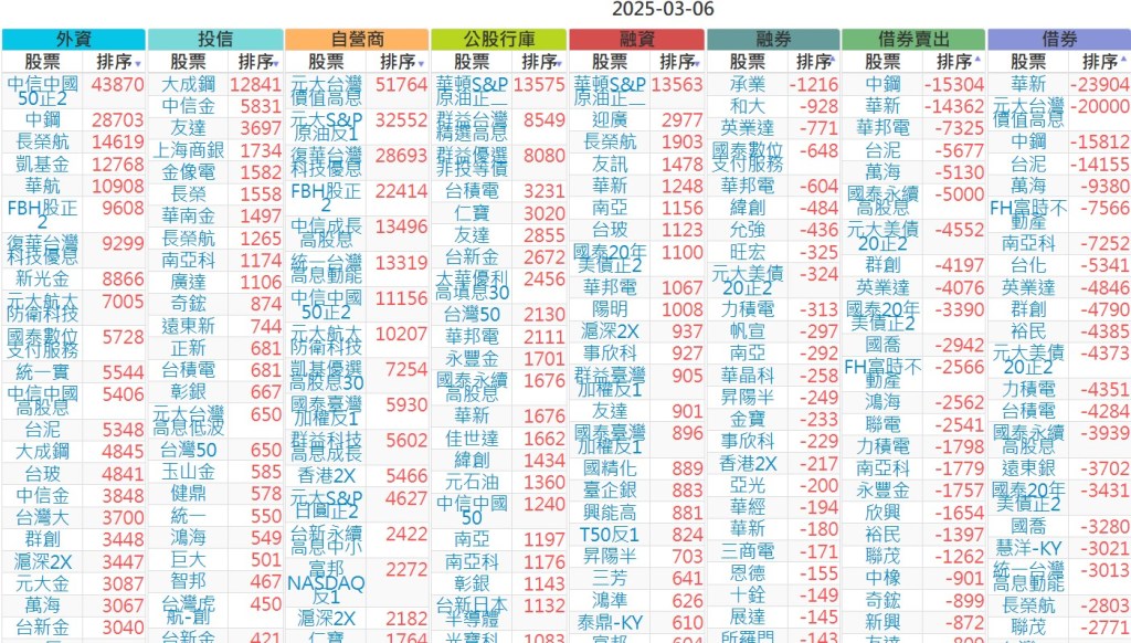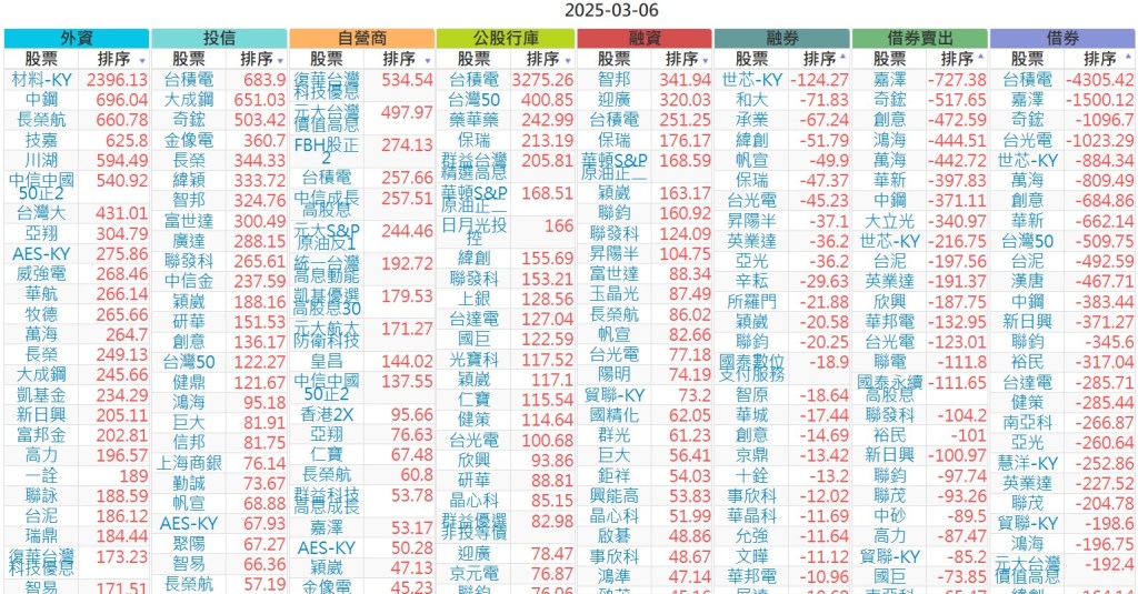 2025-0306【外資、投信】買賣超個股 2025-03-06 股狗網小編 投資誌-大盤 發表留言 上市:【外資、投信】買超(依金額) (單位:百萬) 上市:【外資、投信】賣超(依金額) (單位:百萬) 上市:【外資、投信】買超(依張數) (單位:張數) 上市:【外資、投信】賣超(依張數) (單位:張數) 免責宣言 本網站文章所提供資訊僅供參考,並無任何推介買賣之意,投資人應自行承擔交易風險。 分享此文: 按一下即可分享至 X(在新視窗中開啟) X 按一下以分享至 Facebook(在新視窗中開啟) Facebook 喜歡 正在載入...