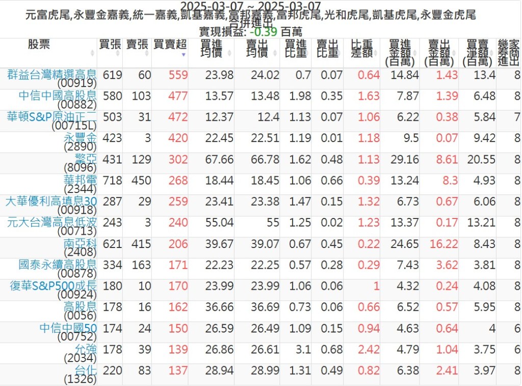 2025-0307主力買賣超個股 2025-03-07 股狗網小編 籌碼面每日資訊 發表留言 可參考下文 『如何查詢當沖、隔日沖分公司券商買賣』 主力當沖券商: 『元富虎尾』,『永豐金嘉義』,『統一嘉義』,『凱基嘉義』,『富邦嘉義』,『富邦虎尾』,『光和虎尾』,『凱基虎尾』,『永豐金虎尾』。 『當沖標的』 『買超股票』 『賣超股票』 免責宣言 本網站文章所提供資訊僅供參考,並無任何推介買賣之意,投資人應自行承擔交易風險。 分享此文: 按一下即可分享至 X(在新視窗中開啟) X 按一下以分享至 Facebook(在新視窗中開啟) Facebook 喜歡 正在載入...