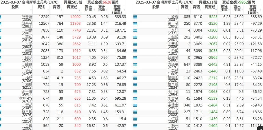 2025-0307關鍵券商買賣超 2025-03-07 股狗網小編 籌碼面每日資訊 發表留言 關鍵券商買賣超: 臺銀證券(1040): 台灣摩根士丹利(1470): 凱基台北(9268): 凱基信義(9216): 元大土城永寧(9875): 康和永和(845B) : 富邦建國(9658): 免責宣言 本網站文章所提供資訊僅供參考,並無任何推介買賣之意,投資人應自行承擔交易風險。 分享此文: 按一下即可分享至 X(在新視窗中開啟) X 按一下以分享至 Facebook(在新視窗中開啟) Facebook 喜歡 正在載入...
