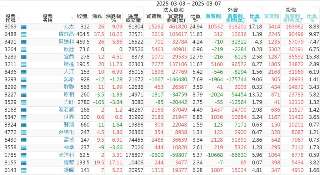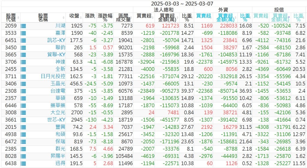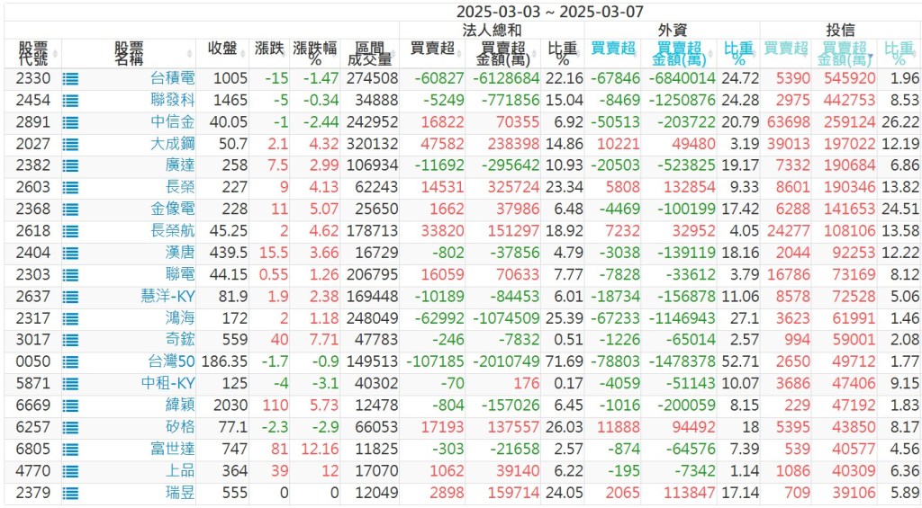 2025/03/03~2025/03/07近5日【投信】買賣超個股 2025-03-09 股狗網小編 投資誌-大盤 發表留言 【上市投信買超個股】(以金額排行,單位:萬) 【上市投信賣超個股】(以金額排行,單位:萬) 【上櫃投信買超個股】(以金額排行,單位:萬) 【上櫃投信賣超個股】(以金額排行,單位:萬) 免責宣言 本網站文章所提供資訊僅供參考,並無任何推介買賣之意,投資人應自行承擔交易風險。 分享此文: 按一下即可分享至 X(在新視窗中開啟) X 按一下以分享至 Facebook(在新視窗中開啟) Facebook 喜歡 正在載入...