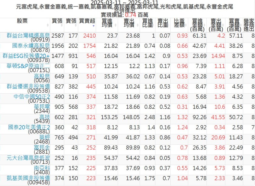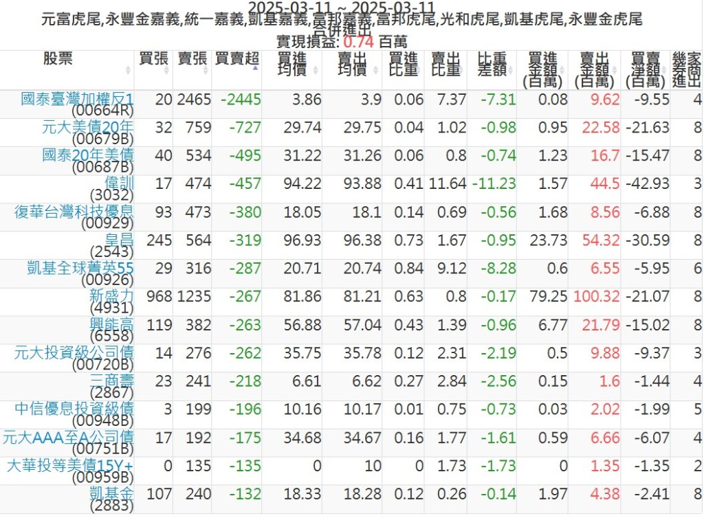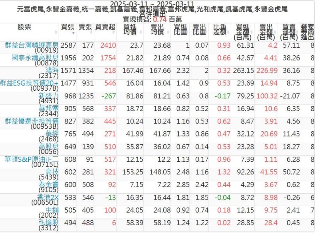 2025-0311主力買賣超個股 2025-03-11 股狗網小編 籌碼面每日資訊 發表留言 可參考下文 『如何查詢當沖、隔日沖分公司券商買賣』 主力當沖券商: 『元富虎尾』,『永豐金嘉義』,『統一嘉義』,『凱基嘉義』,『富邦嘉義』,『富邦虎尾』,『光和虎尾』,『凱基虎尾』,『永豐金虎尾』。 『當沖標的』 『買超股票』 『賣超股票』 免責宣言 本網站文章所提供資訊僅供參考,並無任何推介買賣之意,投資人應自行承擔交易風險。 分享此文: 按一下即可分享至 X(在新視窗中開啟) X 按一下以分享至 Facebook(在新視窗中開啟) Facebook 喜歡 正在載入...
