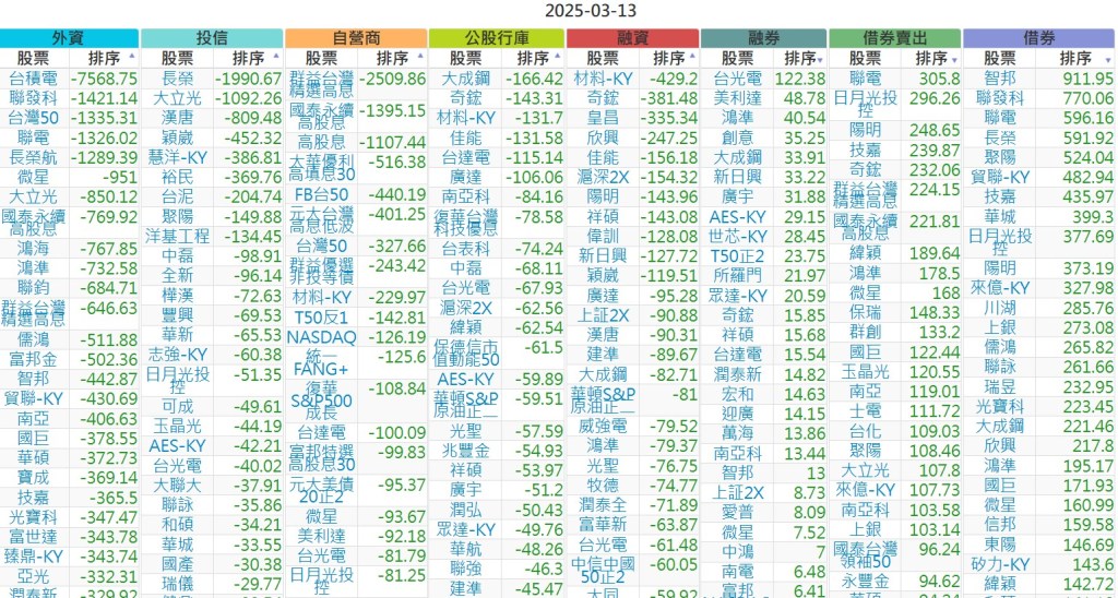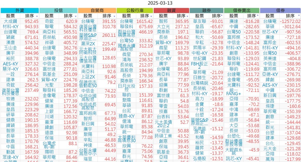 2025-0313【外資、投信】買賣超個股 2025-03-13 股狗網小編 投資誌-大盤 發表留言 上市:【外資、投信】買超(依金額) (單位:百萬) 上市:【外資、投信】賣超(依金額) (單位:百萬) 上市:【外資、投信】買超(依張數) (單位:張數) 上市:【外資、投信】賣超(依張數) (單位:張數) 免責宣言 本網站文章所提供資訊僅供參考,並無任何推介買賣之意,投資人應自行承擔交易風險。 分享此文: 按一下即可分享至 X(在新視窗中開啟) X 按一下以分享至 Facebook(在新視窗中開啟) Facebook 喜歡 正在載入...