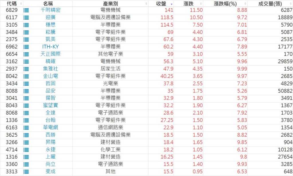 2025-0318日新高爆量上漲股 2025-03-18 股狗網小編 選股條件 發表留言 利用股狗選股的選股條件可以【挑選突破20日新高,爆量上漲起漲點股票】 1.股狗選股 https://www.stockdog.com.tw 2.選股條件: a.收盤價創20日新高 b.當日漲幅 > 2% C.成交量大於5日均量2倍 免責宣言 本網站文章所提供資訊僅供參考,並無任何推介買賣之意,投資人應自行承擔交易風險。 分享此文: 按一下即可分享至 X(在新視窗中開啟) X 按一下以分享至 Facebook(在新視窗中開啟) Facebook 喜歡 正在載入...