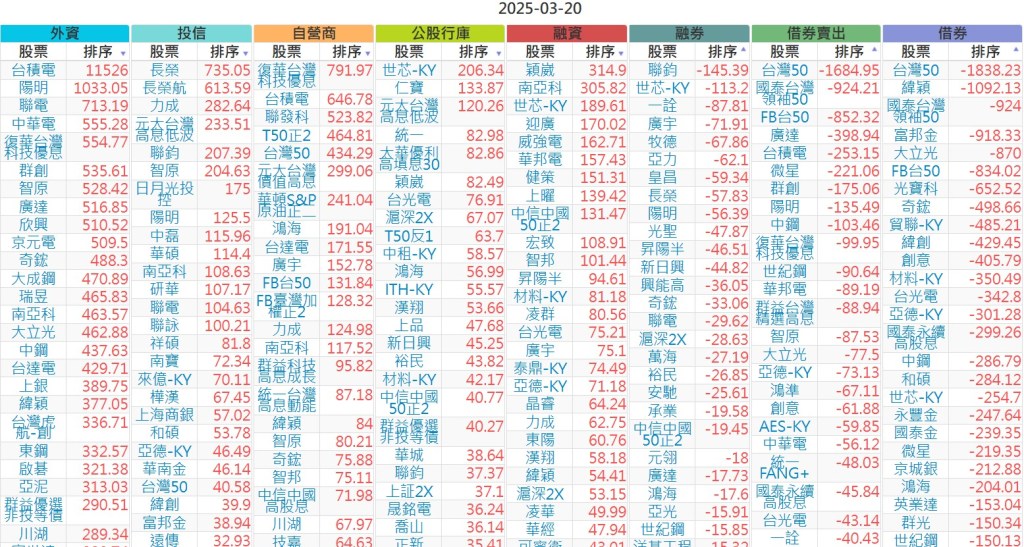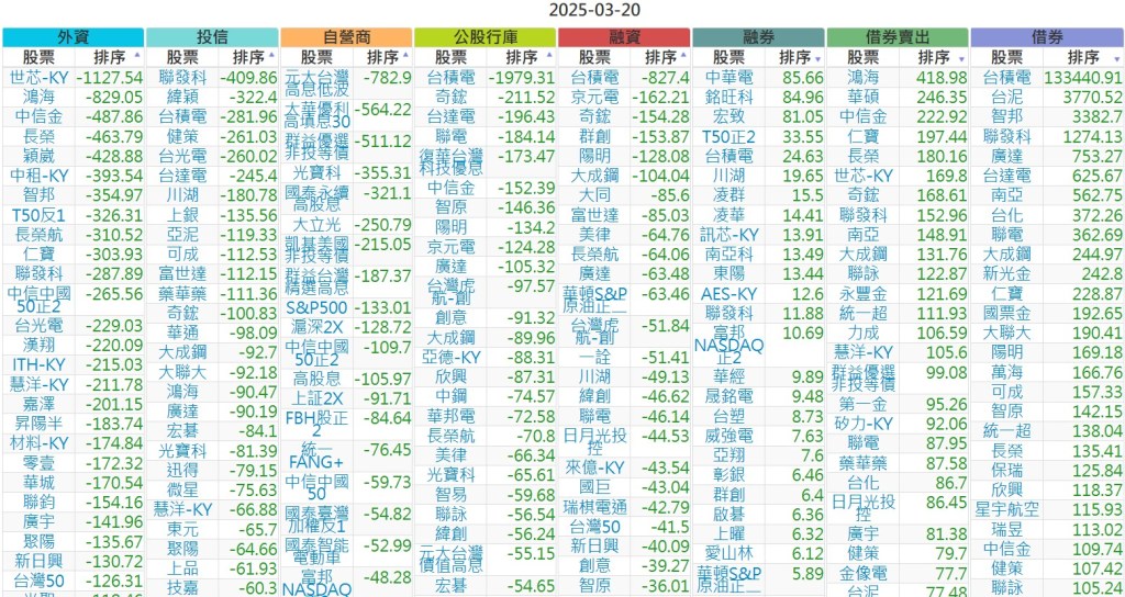 2025-0320【外資、投信】買賣超個股 2025-03-20 股狗網小編 投資誌-大盤 發表留言 上市:【外資、投信】買超(依金額) (單位:百萬) 上市:【外資、投信】賣超(依金額) (單位:百萬) 上市:【外資、投信】買超(依張數) (單位:張數) 上市:【外資、投信】賣超(依張數) (單位:張數) 免責宣言 本網站文章所提供資訊僅供參考,並無任何推介買賣之意,投資人應自行承擔交易風險。 分享此文: 按一下即可分享至 X(在新視窗中開啟) X 按一下以分享至 Facebook(在新視窗中開啟) Facebook 喜歡 正在載入...