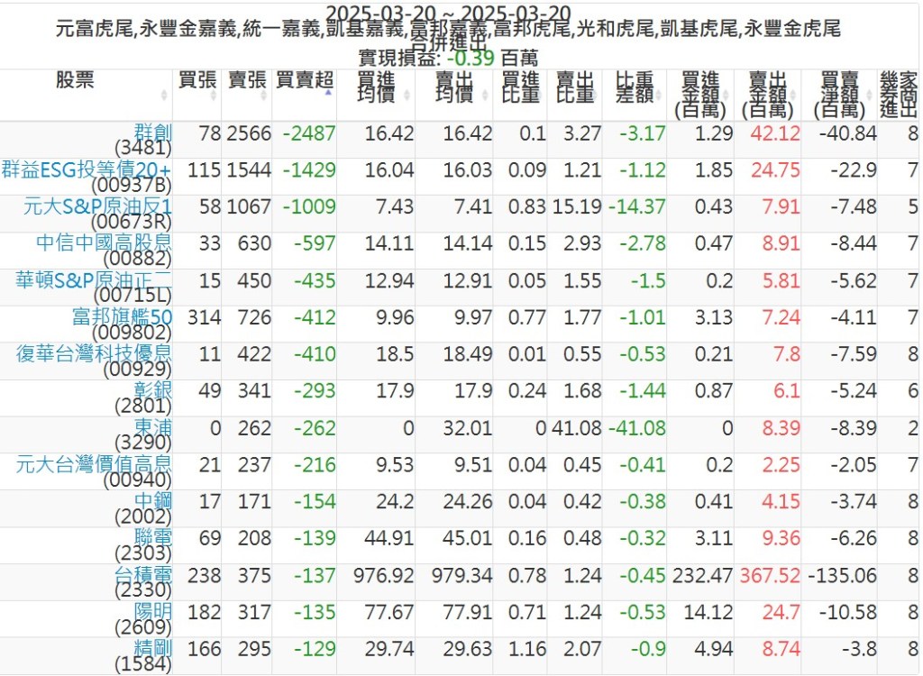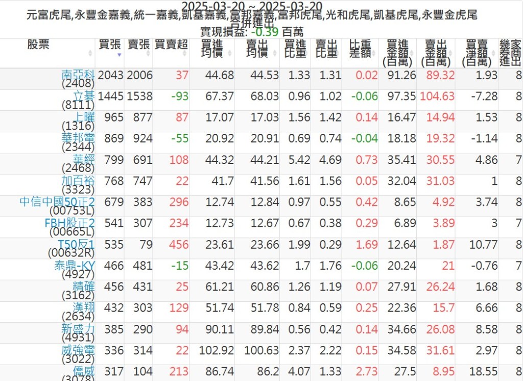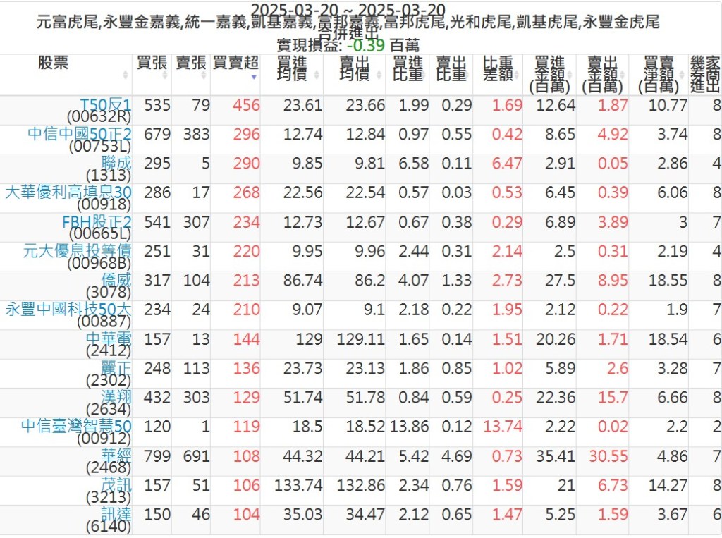 2025-0320主力買賣超個股 2025-03-20 股狗網小編 籌碼面每日資訊 發表留言 可參考下文 『如何查詢當沖、隔日沖分公司券商買賣』 主力當沖券商: 『元富虎尾』,『永豐金嘉義』,『統一嘉義』,『凱基嘉義』,『富邦嘉義』,『富邦虎尾』,『光和虎尾』,『凱基虎尾』,『永豐金虎尾』。 『當沖標的』 『買超股票』 『賣超股票』 免責宣言 本網站文章所提供資訊僅供參考,並無任何推介買賣之意,投資人應自行承擔交易風險。 分享此文: 按一下即可分享至 X(在新視窗中開啟) X 按一下以分享至 Facebook(在新視窗中開啟) Facebook 喜歡 正在載入...