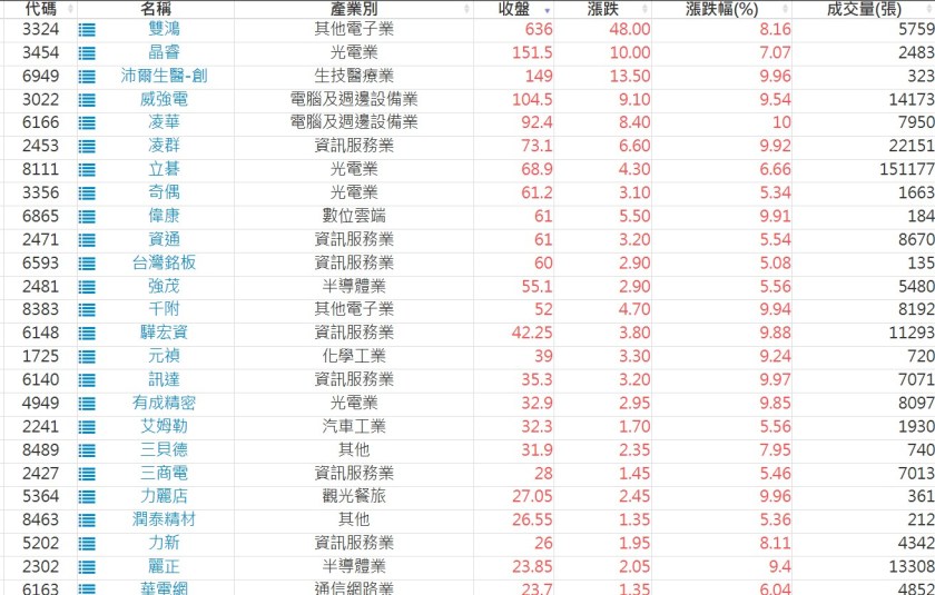 2025-0320日新高爆量上漲股 2025-03-20 股狗網小編 選股條件 發表留言 利用股狗選股的選股條件可以【挑選突破20日新高,爆量上漲起漲點股票】 1.股狗選股 https://www.stockdog.com.tw 2.選股條件: a.收盤價創20日新高 b.當日漲幅 > 2% C.成交量大於5日均量2倍 免責宣言 本網站文章所提供資訊僅供參考,並無任何推介買賣之意,投資人應自行承擔交易風險。 分享此文: 按一下即可分享至 X(在新視窗中開啟) X 按一下以分享至 Facebook(在新視窗中開啟) Facebook 喜歡 正在載入...