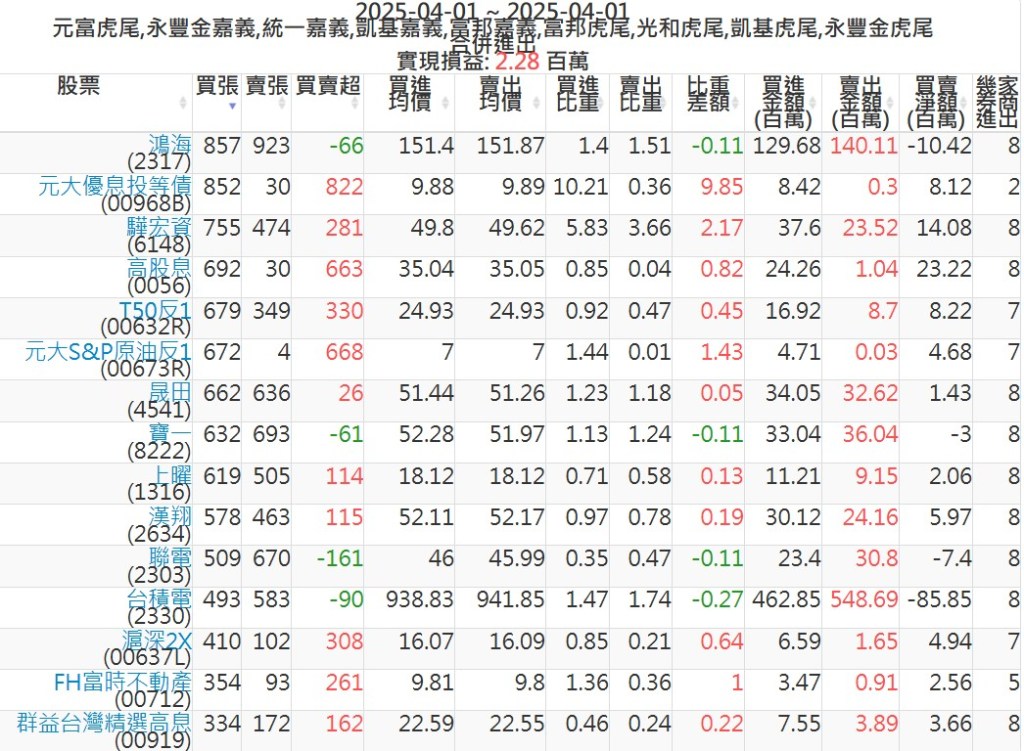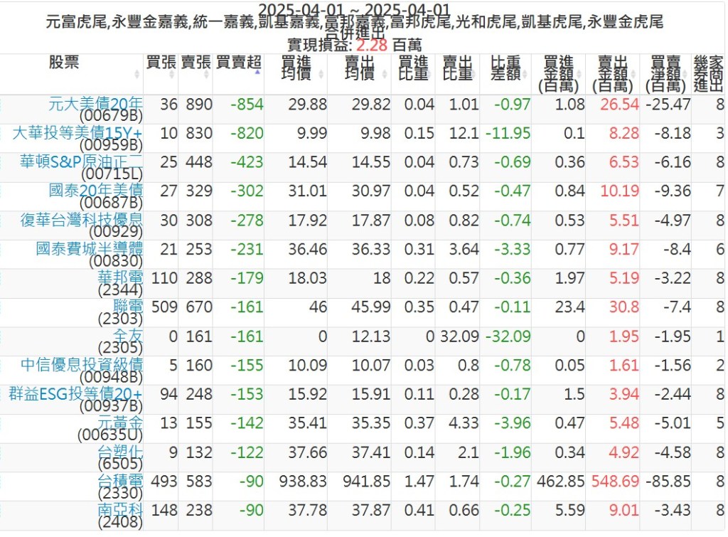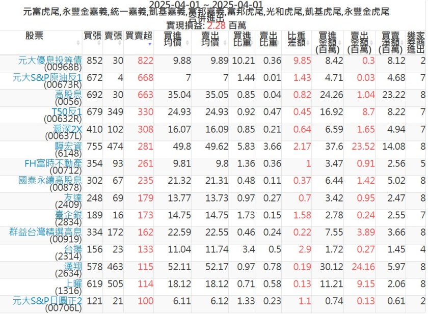 2025-0401主力買賣超個股 2025-04-01 股狗網小編 籌碼面每日資訊 發表留言 可參考下文 『如何查詢當沖、隔日沖分公司券商買賣』 主力當沖券商: 『元富虎尾』,『永豐金嘉義』,『統一嘉義』,『凱基嘉義』,『富邦嘉義』,『富邦虎尾』,『光和虎尾』,『凱基虎尾』,『永豐金虎尾』。 『當沖標的』 『買超股票』 『賣超股票』 免責宣言 本網站文章所提供資訊僅供參考,並無任何推介買賣之意,投資人應自行承擔交易風險。 分享此文: 按一下即可分享至 X(在新視窗中開啟) X 按一下以分享至 Facebook(在新視窗中開啟) Facebook 喜歡 正在載入...