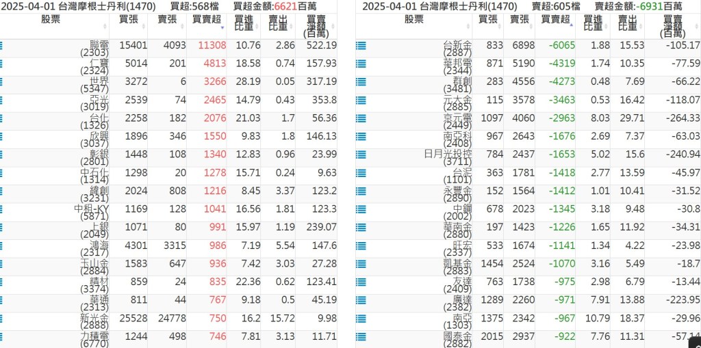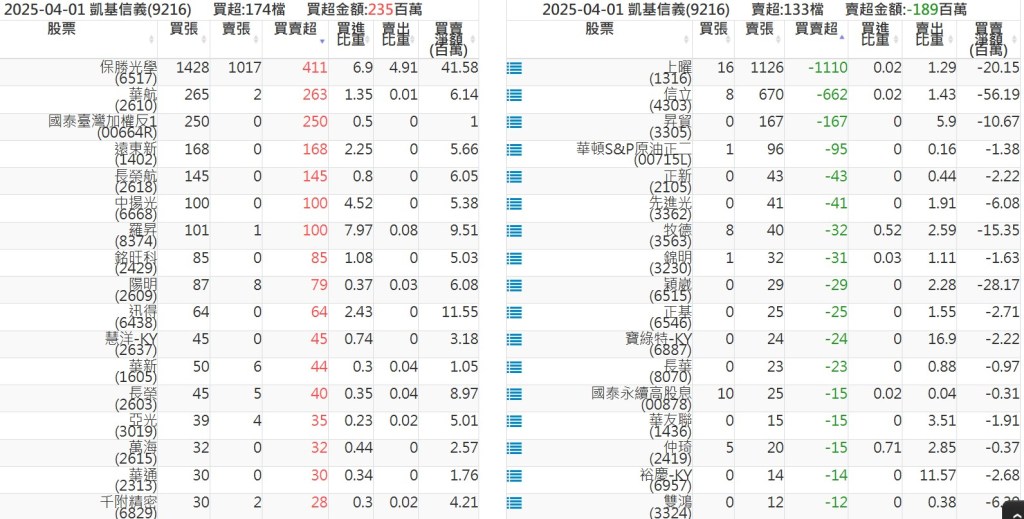 2025-0401關鍵券商買賣超 2025-04-01 股狗網小編 籌碼面每日資訊 發表留言 關鍵券商買賣超: 臺銀證券(1040): 台灣摩根士丹利(1470): 凱基台北(9268): 凱基信義(9216): 元大土城永寧(9875): 康和永和(845B) : 富邦建國(9658): 免責宣言 本網站文章所提供資訊僅供參考,並無任何推介買賣之意,投資人應自行承擔交易風險。 分享此文: 按一下即可分享至 X(在新視窗中開啟) X 按一下以分享至 Facebook(在新視窗中開啟) Facebook 喜歡 正在載入...