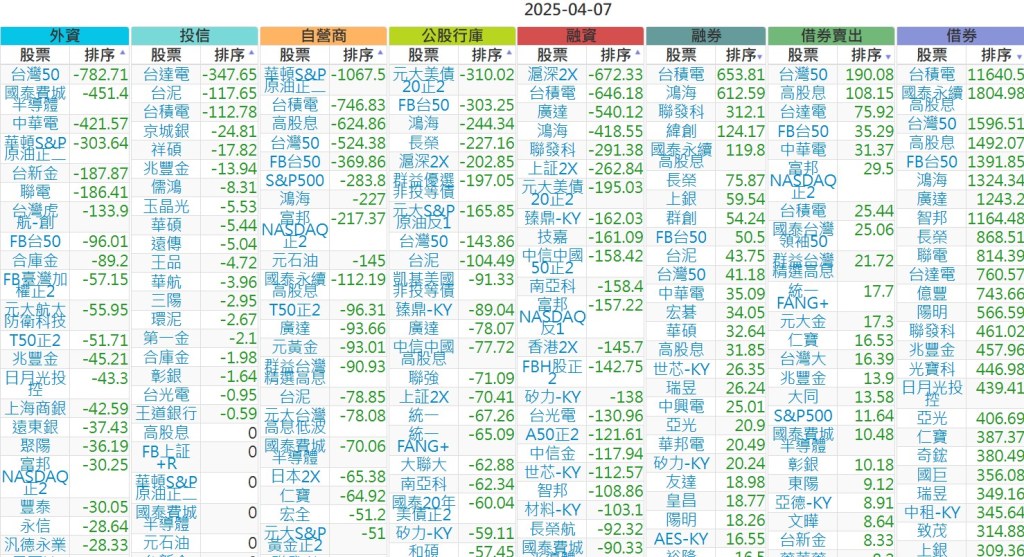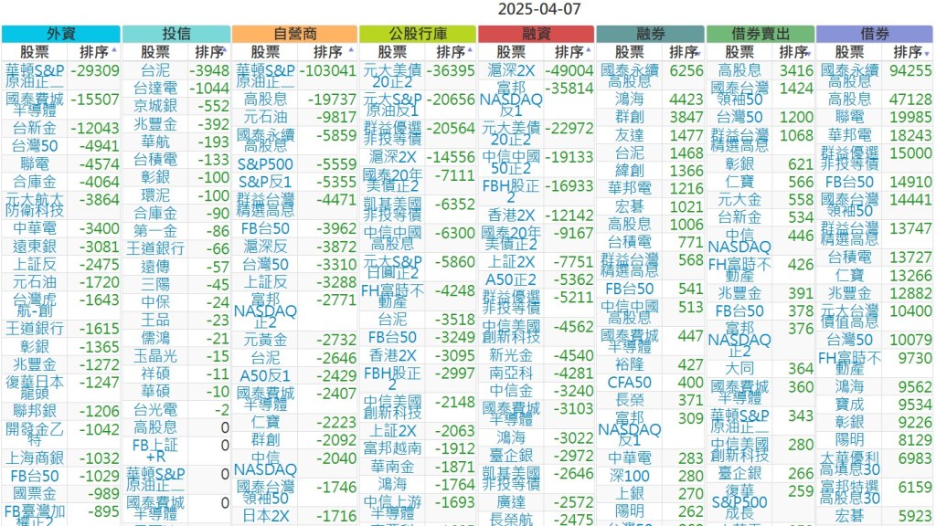 2025-0407【外資、投信】買賣超個股 2025-04-07 股狗網小編 投資誌-大盤 發表留言 上市:【外資、投信】買超(依金額) (單位:百萬) 上市:【外資、投信】賣超(依金額) (單位:百萬) 上市:【外資、投信】買超(依張數) (單位:張數) 上市:【外資、投信】賣超(依張數) (單位:張數) 免責宣言 本網站文章所提供資訊僅供參考,並無任何推介買賣之意,投資人應自行承擔交易風險。 分享此文: 按一下即可分享至 X(在新視窗中開啟) X 按一下以分享至 Facebook(在新視窗中開啟) Facebook 喜歡 正在載入...