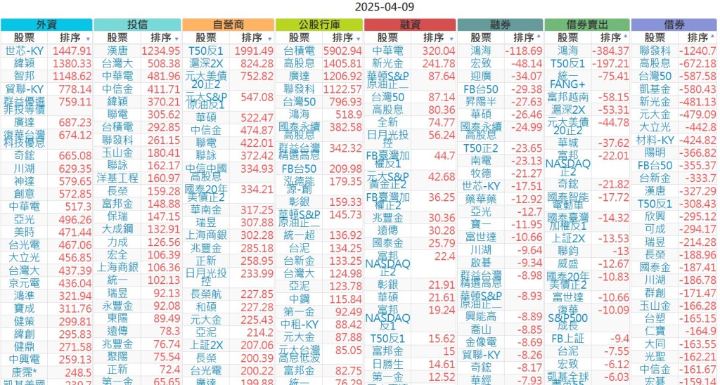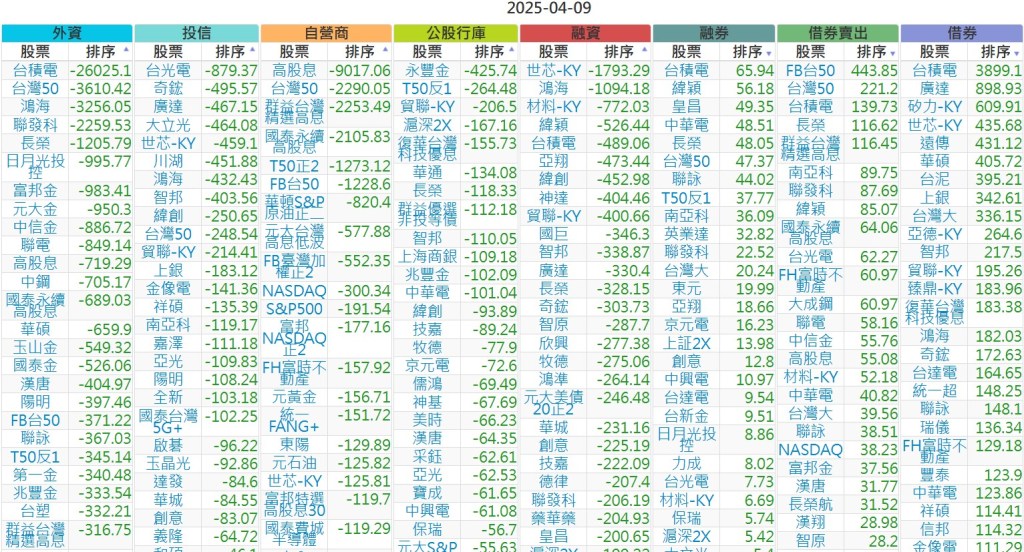 2025-0409【外資、投信】買賣超個股 2025-04-09 股狗網小編 投資誌-大盤 發表留言 上市:【外資、投信】買超(依金額) (單位:百萬) 上市:【外資、投信】賣超(依金額) (單位:百萬) 上市:【外資、投信】買超(依張數) (單位:張數) 上市:【外資、投信】賣超(依張數) (單位:張數) 免責宣言 本網站文章所提供資訊僅供參考,並無任何推介買賣之意,投資人應自行承擔交易風險。 分享此文: 按一下即可分享至 X(在新視窗中開啟) X 按一下以分享至 Facebook(在新視窗中開啟) Facebook 喜歡 正在載入...