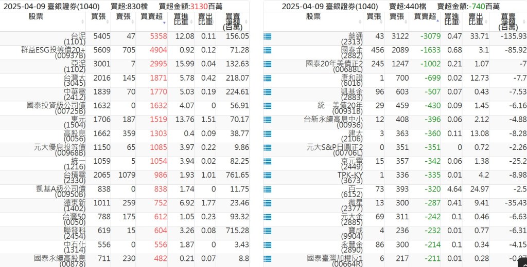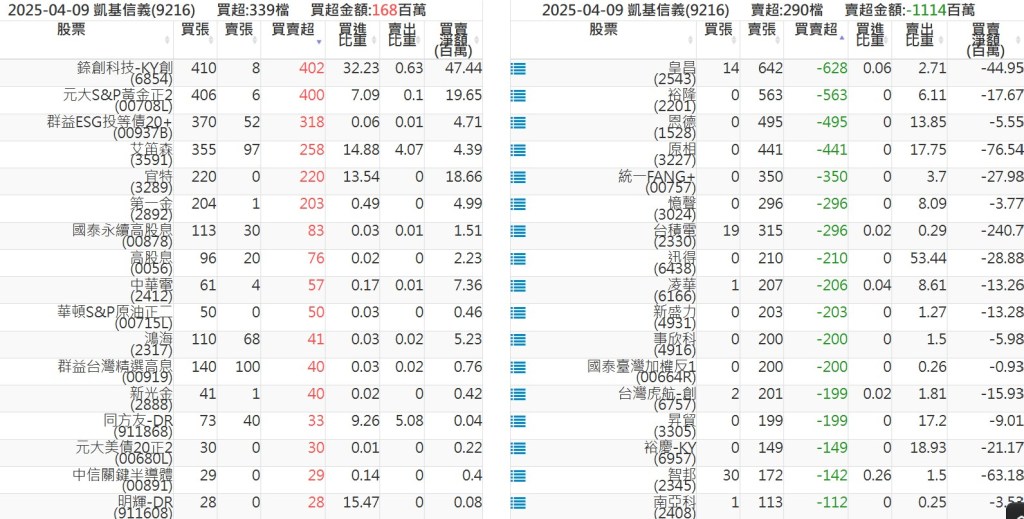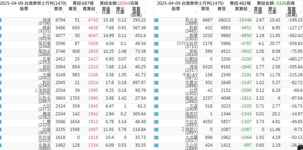 2025-0409關鍵券商買賣超 2025-04-09 股狗網小編 籌碼面每日資訊 發表留言 關鍵券商買賣超: 臺銀證券(1040): 台灣摩根士丹利(1470): 凱基台北(9268): 凱基信義(9216): 元大土城永寧(9875): 康和永和(845B) : 富邦建國(9658): 免責宣言 本網站文章所提供資訊僅供參考,並無任何推介買賣之意,投資人應自行承擔交易風險。 分享此文: 按一下即可分享至 X(在新視窗中開啟) X 按一下以分享至 Facebook(在新視窗中開啟) Facebook 喜歡 正在載入...