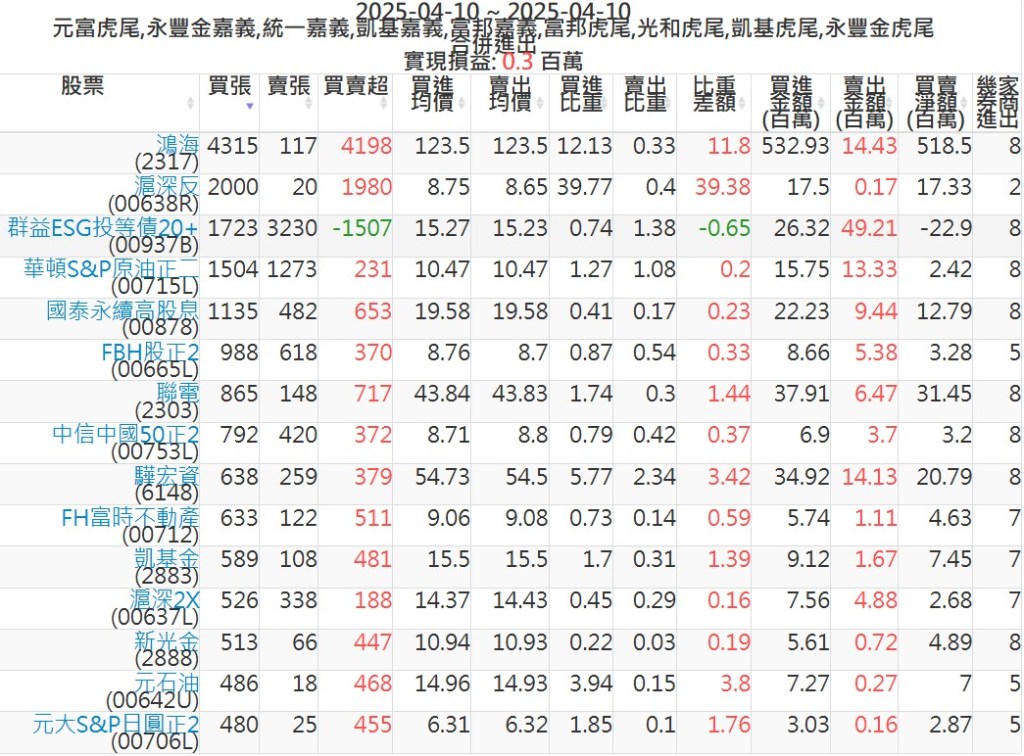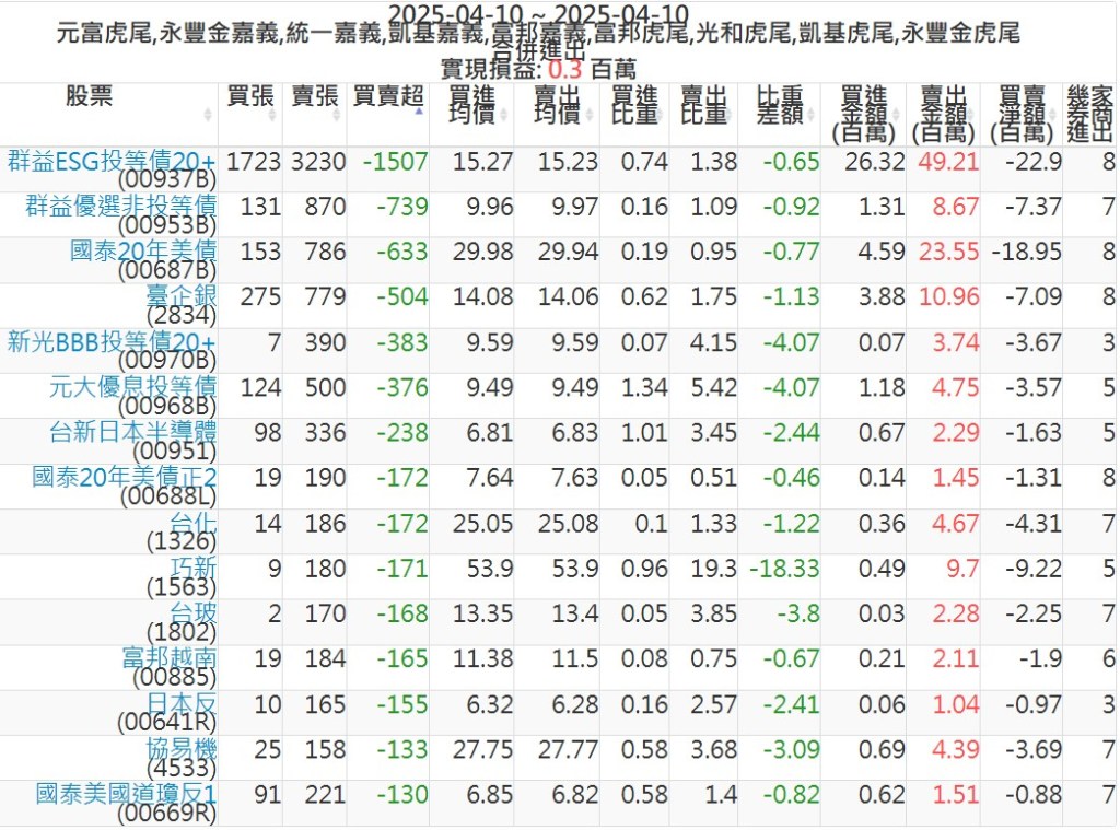 2025-0410主力買賣超個股 2025-04-10 股狗網小編 籌碼面每日資訊 發表留言 可參考下文 『如何查詢當沖、隔日沖分公司券商買賣』 主力當沖券商: 『元富虎尾』,『永豐金嘉義』,『統一嘉義』,『凱基嘉義』,『富邦嘉義』,『富邦虎尾』,『光和虎尾』,『凱基虎尾』,『永豐金虎尾』。 『當沖標的』 『買超股票』 『賣超股票』 免責宣言 本網站文章所提供資訊僅供參考,並無任何推介買賣之意,投資人應自行承擔交易風險。 分享此文: 按一下即可分享至 X(在新視窗中開啟) X 按一下以分享至 Facebook(在新視窗中開啟) Facebook 喜歡 正在載入...