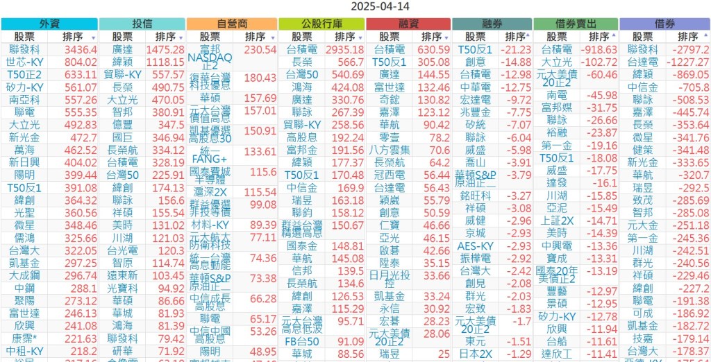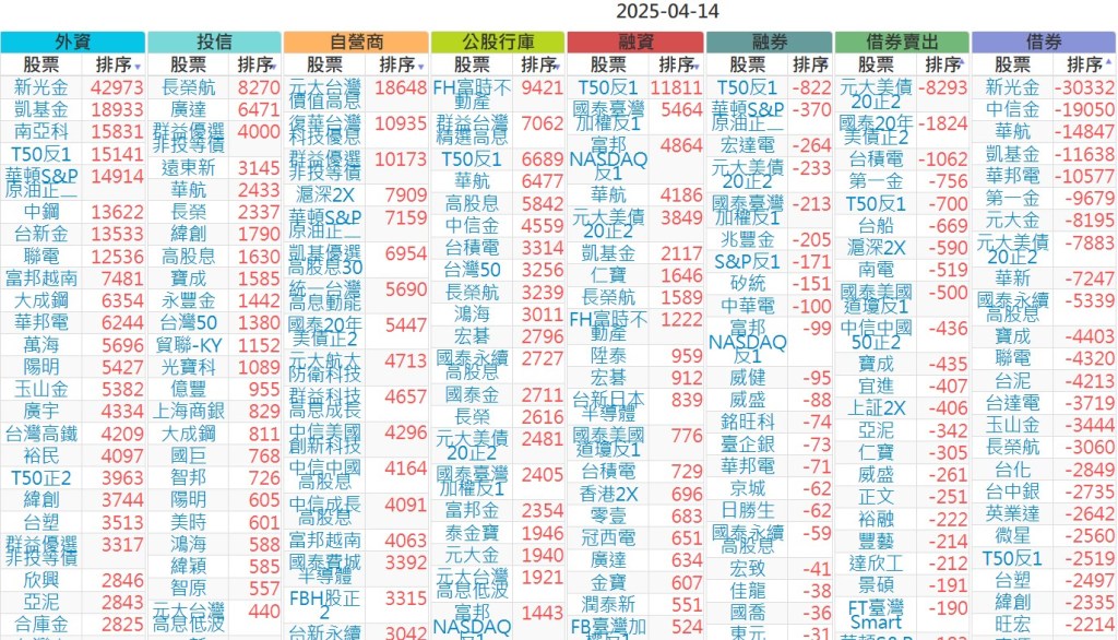 2025-0414【外資、投信】買賣超個股 2025-04-14 股狗網小編 投資誌-大盤 發表留言 上市:【外資、投信】買超(依金額) (單位:百萬) 上市:【外資、投信】賣超(依金額) (單位:百萬) 上市:【外資、投信】買超(依張數) (單位:張數) 上市:【外資、投信】賣超(依張數) (單位:張數) 免責宣言 本網站文章所提供資訊僅供參考,並無任何推介買賣之意,投資人應自行承擔交易風險。 分享此文: 按一下即可分享至 X(在新視窗中開啟) X 按一下以分享至 Facebook(在新視窗中開啟) Facebook 喜歡 正在載入...