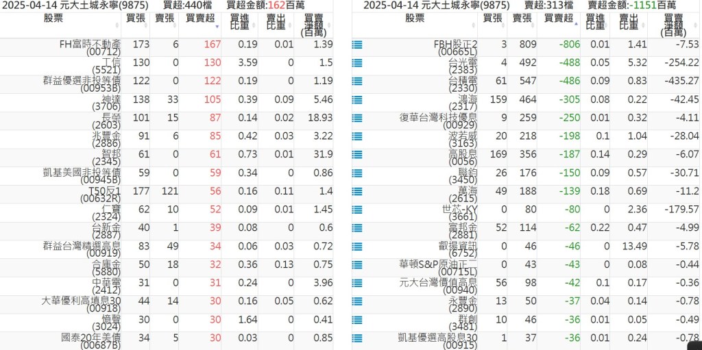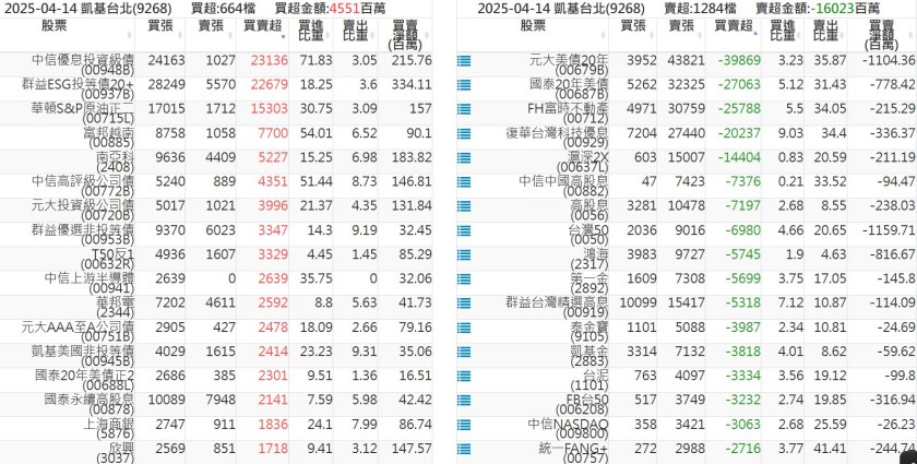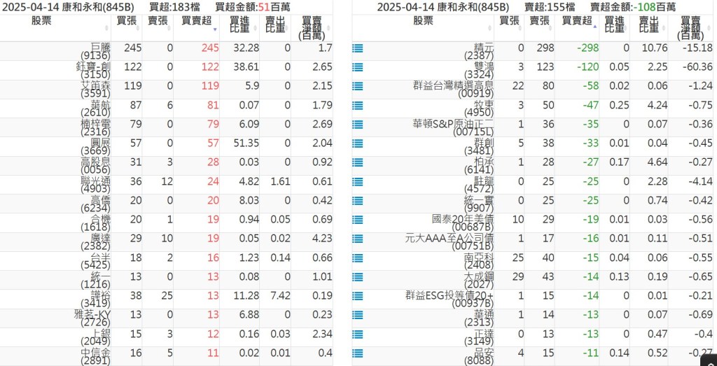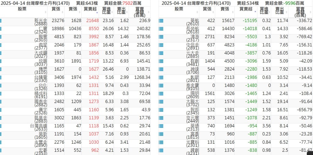 2025-0414關鍵券商買賣超 2025-04-14 股狗網小編 籌碼面每日資訊 發表留言 關鍵券商買賣超: 臺銀證券(1040): 台灣摩根士丹利(1470): 凱基台北(9268): 凱基信義(9216): 元大土城永寧(9875): 康和永和(845B) : 富邦建國(9658): 免責宣言 本網站文章所提供資訊僅供參考,並無任何推介買賣之意,投資人應自行承擔交易風險。 分享此文: 按一下即可分享至 X(在新視窗中開啟) X 按一下以分享至 Facebook(在新視窗中開啟) Facebook 喜歡 正在載入...